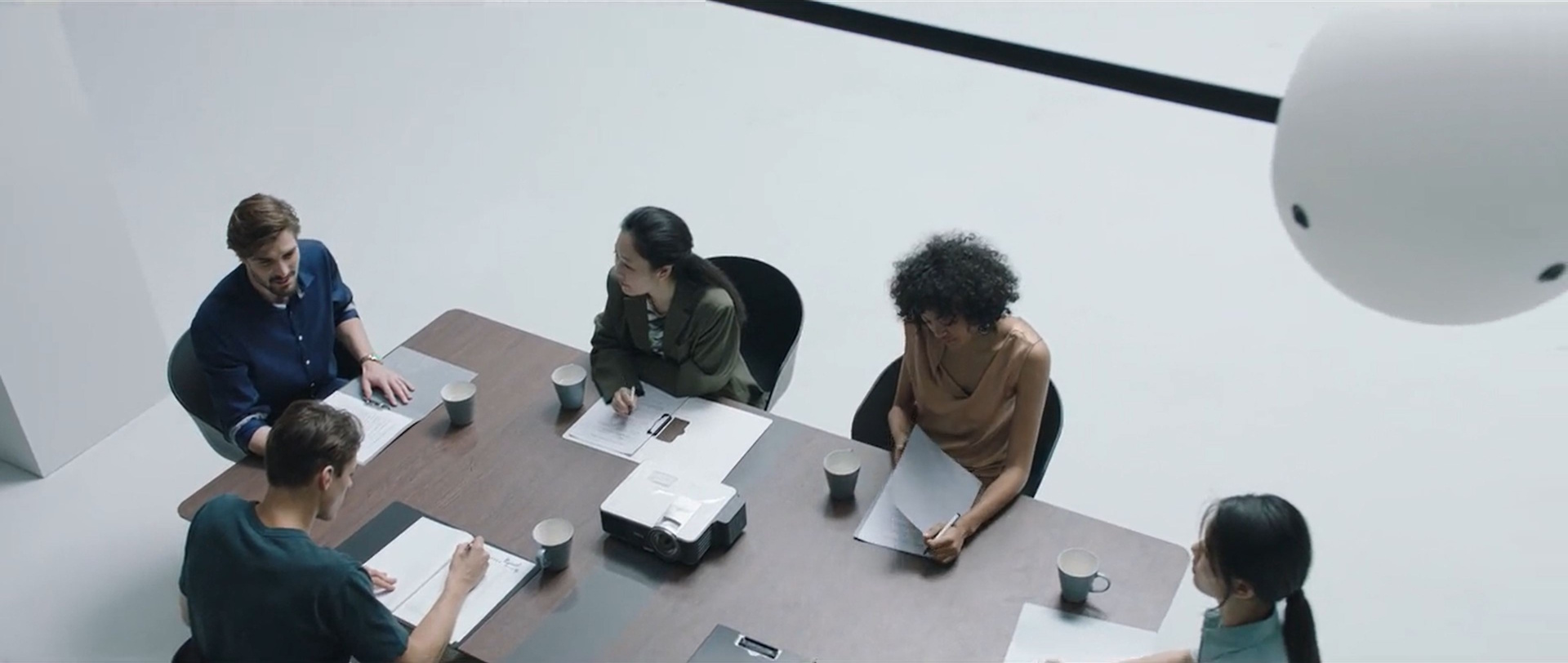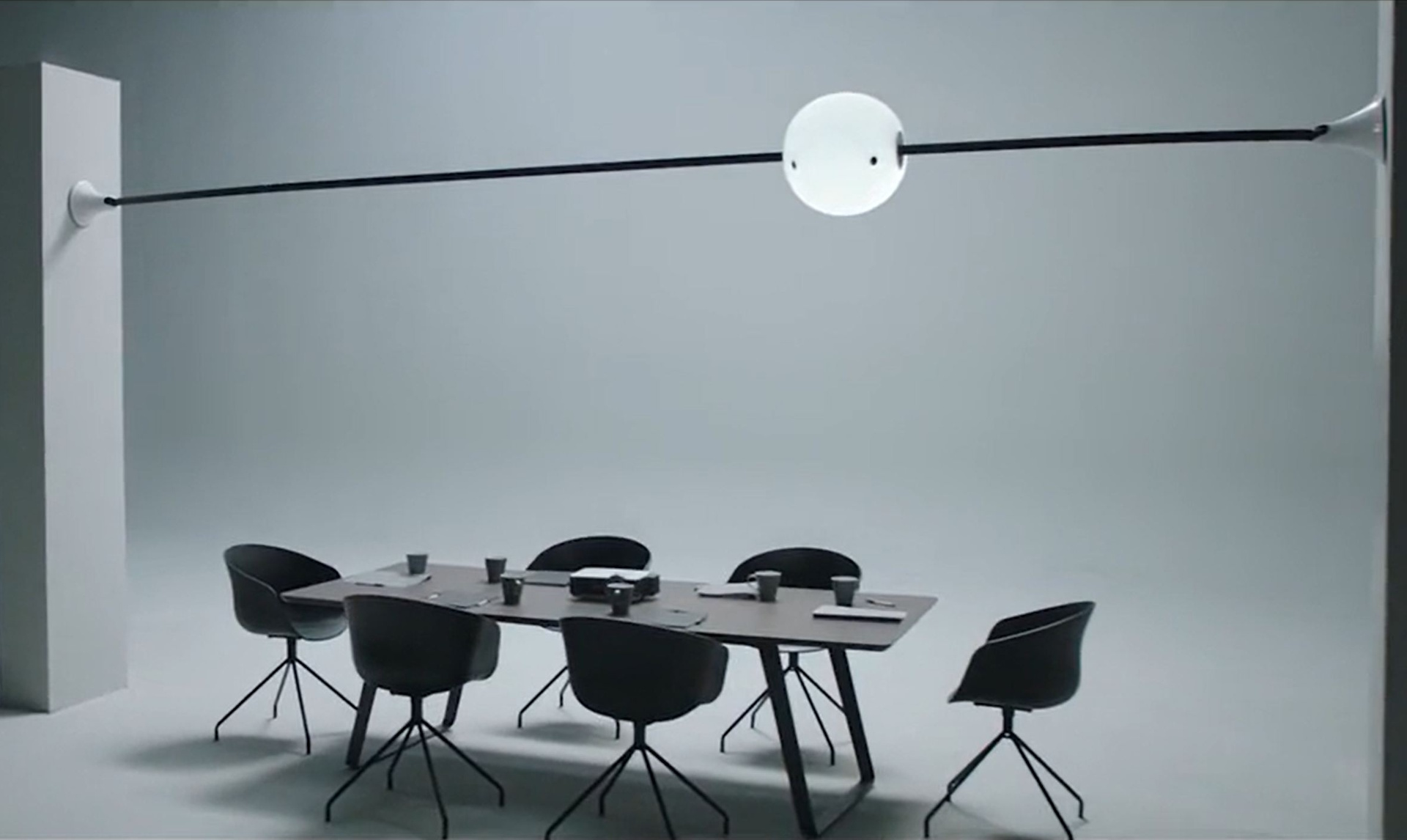 Visualmente, o objeto esférico é, antes de tudo, uma lâmpada, mas uma lâmpada inteligente. Em vez de ficar pendurado no teto, ele se move ao longo de um trilho montado entre duas paredes, o que lhe permite percorrer todo o cômodo próximo ao teto (ou em qualquer outro lugar). Isso permite que a lâmpada literalmente "siga" o ocupante e forneça luz onde for necessário. Sentado no sofá? A esfera brilhante paira acima. Levantando-se para trabalhar em uma mesa? A lâmpada se move ao longo do trilho e ilumina o novo local.