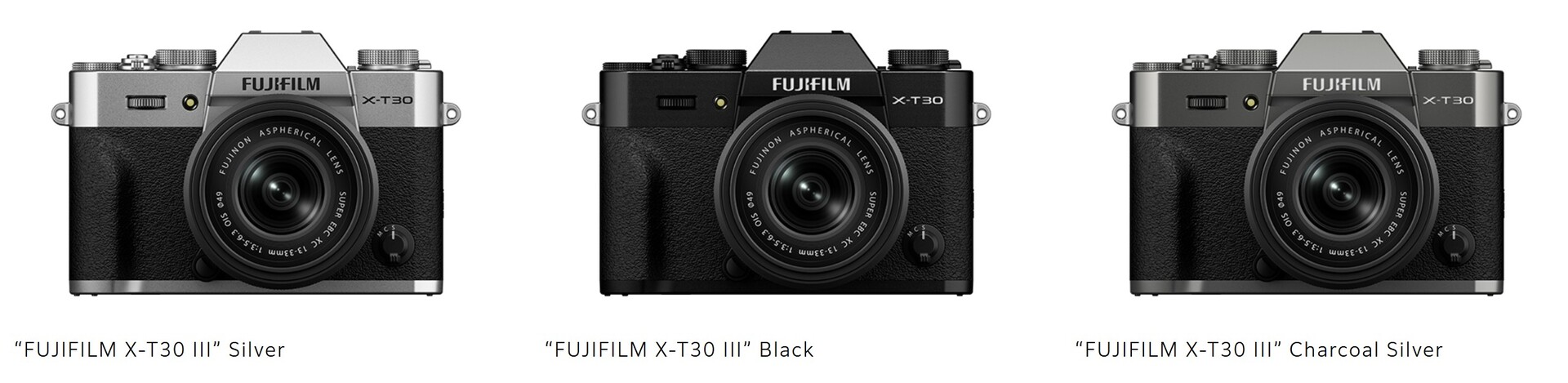 A Fujifilm apresentou a câmera sem espelho X-T30 III com um sensor APS-C X-Trans CMOS de 26,1 MP capaz de produzir vídeo 30P de 6,2K. Seu X-Processor 5 permite processamento de imagem e foco automático mais rápidos. A câmera compacta foi projetada para o transporte diário, com 378 gramas (13,3 oz.) de peso e 118,4 x 82,8 x 46,8 mm (4,7 x 3,3 x 1,8 pol.) de tamanho. As fotos e imagens podem ser visualizadas em uma tela LCD sensível ao toque inclinável de 3 polegadas com 1,62 milhão de pontos.