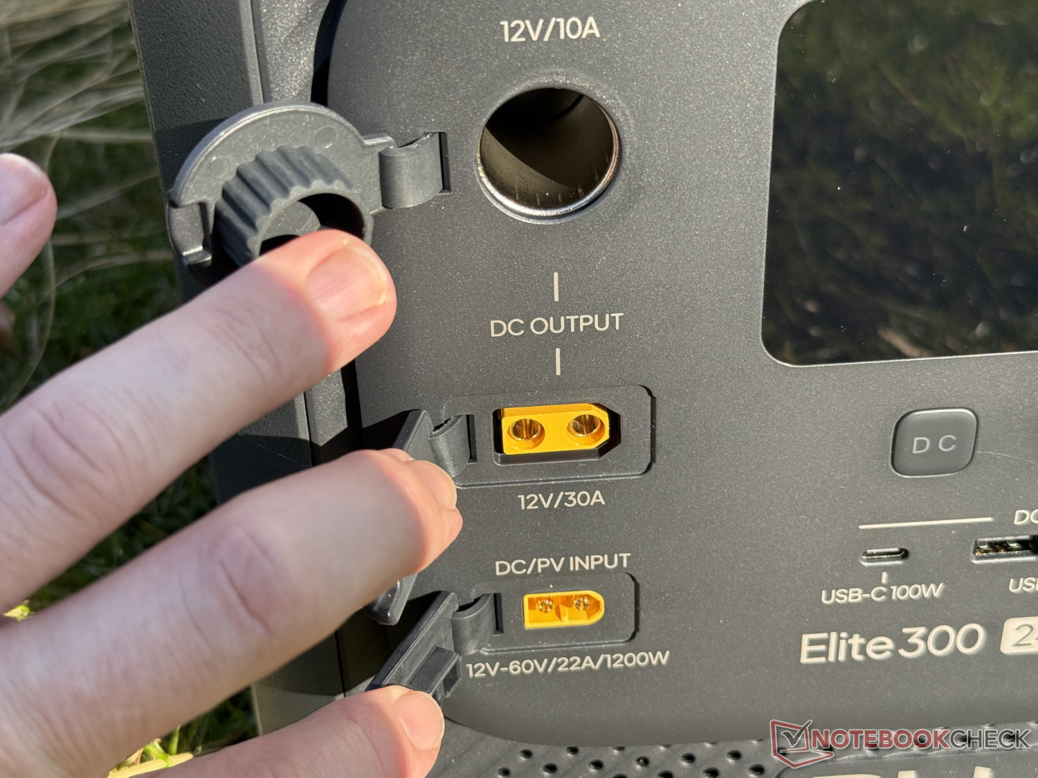 Com três tomadas de CA cada, ambos têm uma tomada de CA a mais do que o novo concorrente da Bluetti. Além da usual tomada de 12 V para veículos, o Elite 300 oferece uma conexão de corrente contínua com 12 V e 30 A, o que nem todo gerador solar tem a bordo. Isso é prático para campistas, por exemplo, para fornecer até 360 W sem operação de inversor.