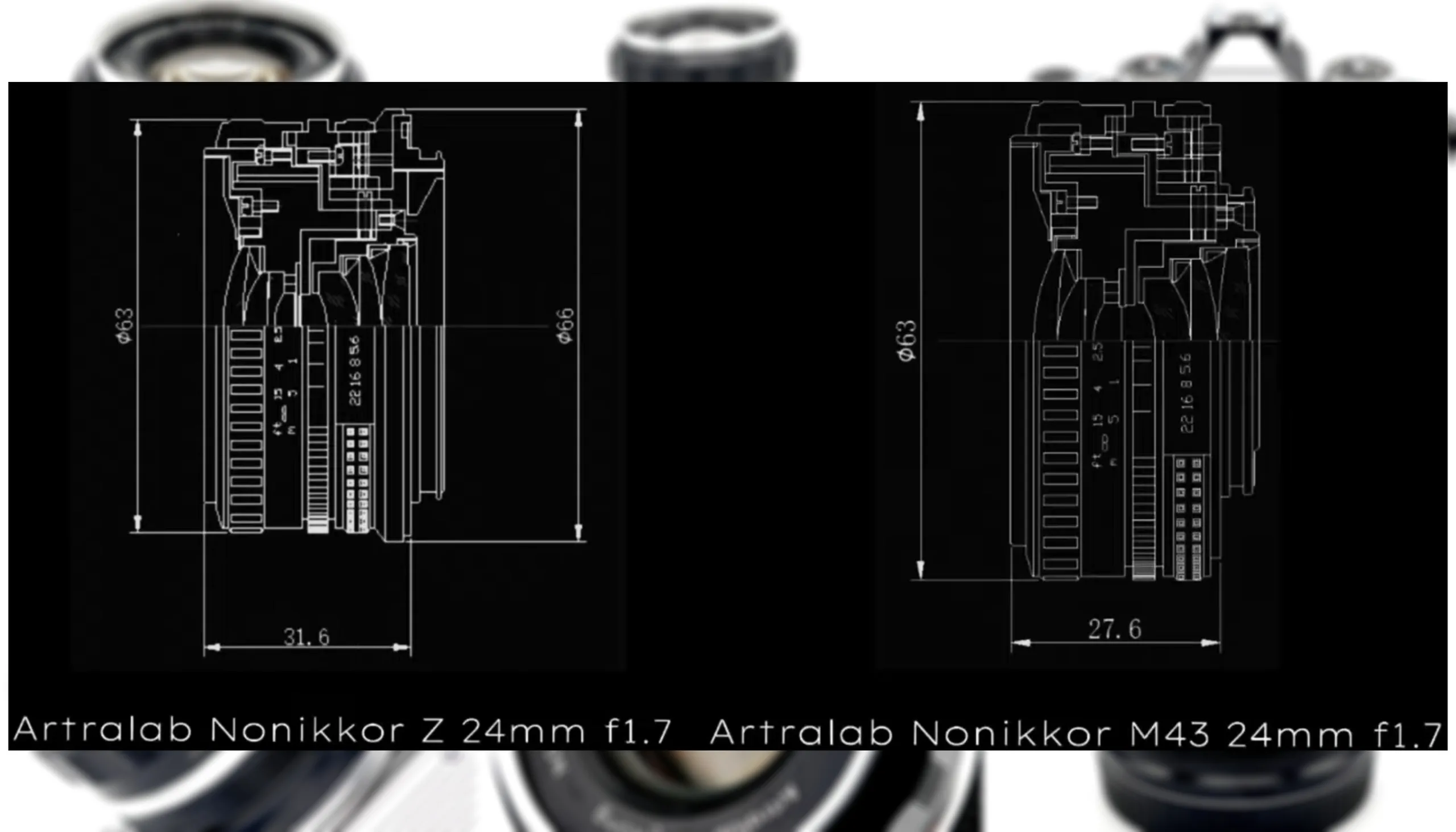 O diagrama do teaser nos deu uma ideia do tamanho final das lentes, com a versão de montagem em Z da Nikon NONIKKOR 24 mm f/1.7 projetando-se apenas 31,6 da frente da câmera em que for montada. A versão para M4/3, por outro lado, é ainda mais compacta, medindo apenas 27,6 mm a partir do flange da lente.