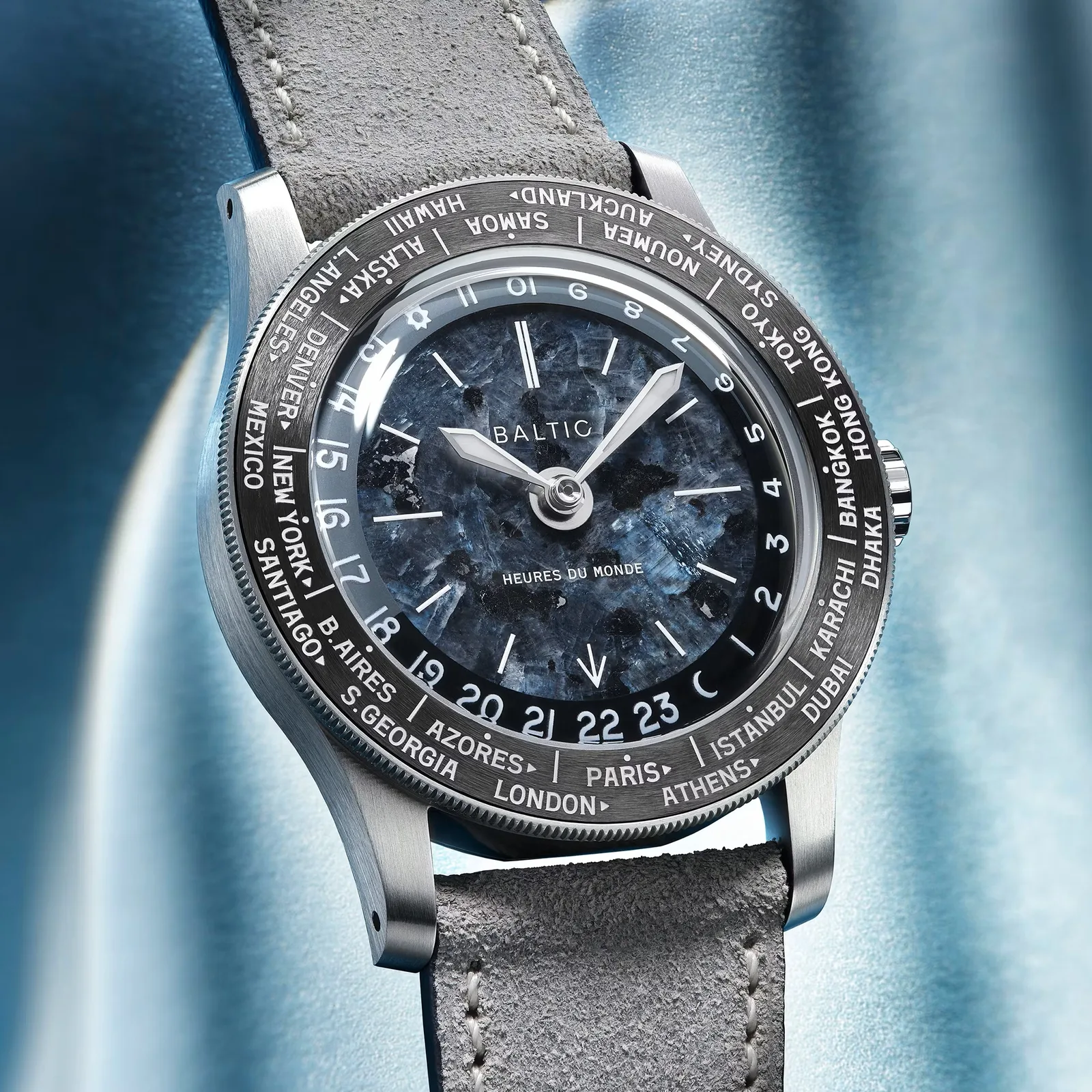 A Baltic apresenta o relógio Heures du Monde com mostrador de pedra e função GMT