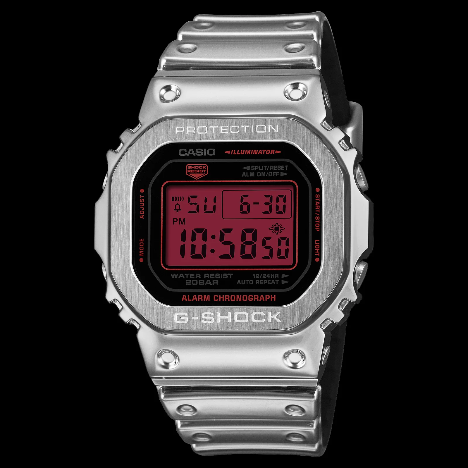 Em todos os quatro relógios, a Casio usa vidro mineral, luz de fundo de LED branco, calendários totalmente automáticos, alarmes, temporizadores, cronômetros, suporte à hora mundial e resistência a choques padrão do G-Shock. A elegante tela vermelha em toda a linha é o principal destaque visual dessa coleção.