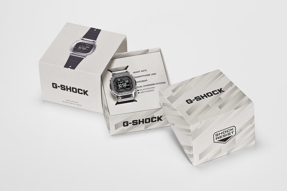 A Casio está posicionando o G-Shock GM-H5600 como uma oferta versátil que é perfeita para o uso diário e para exercícios rigorosos. Ele faz parte da linha G-Squad da empresa, voltada para esportes Linha G-Squad e vem em duas cores: o GM-H5600-1 com caixa prateada e o GM-H5600-9 com caixa dourada. Os dois modelos são idênticos, exceto pelas cores, e apresentam uma tela LCD MIP invertida de alta definição, pulseiras de resina plástica ecologicamente corretas e uma série de sensores na parte traseira.