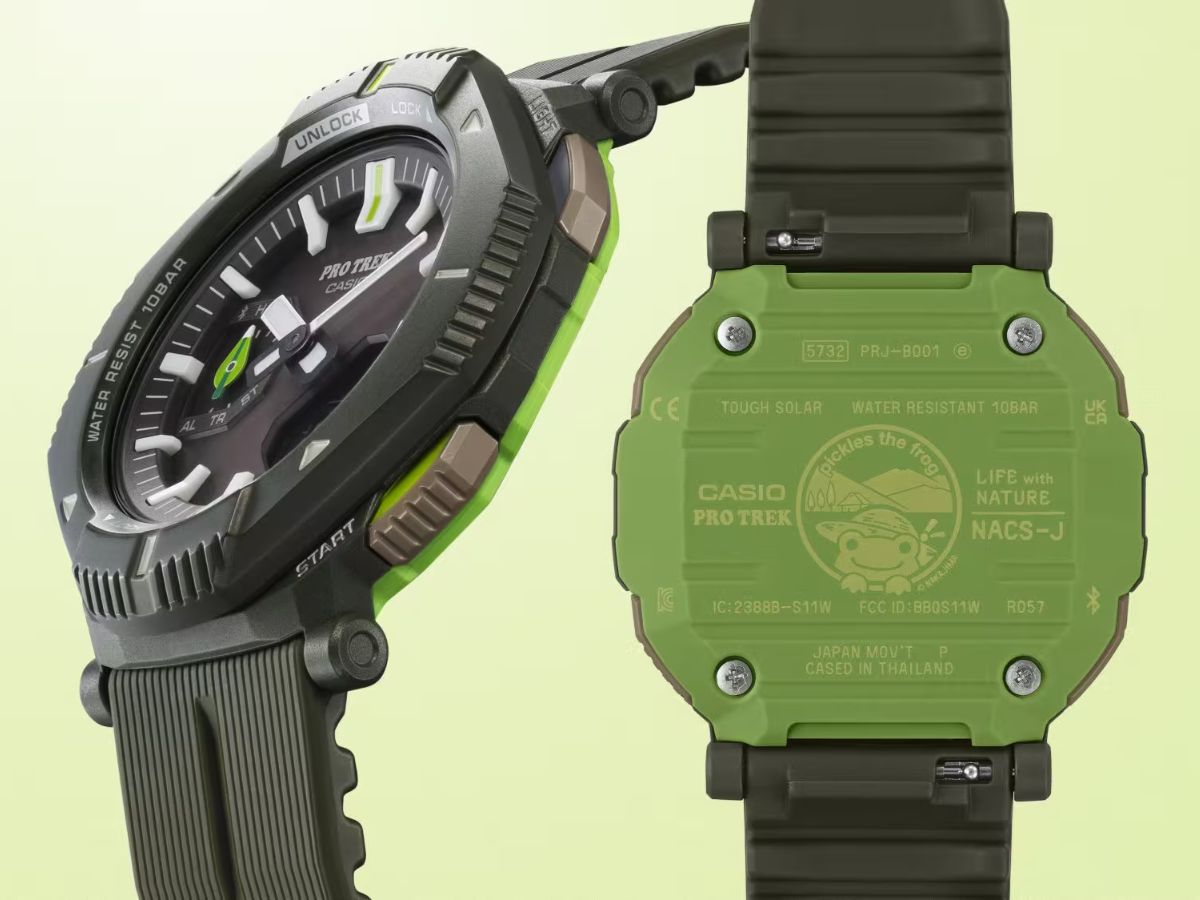 A Casio revelou o relógio colaborativo Pro Trek x The Nature Conservation Society of Japan x Pickles the Frog no Japão. Também conhecido pelo número de modelo PRJ-B001NJ-3JR ou PRJ-B001NJ-3, este relógio tem um design verde, com referências ao popular personagem sapo, que é o mascote da Nature Conservation Society.
