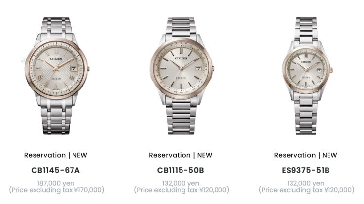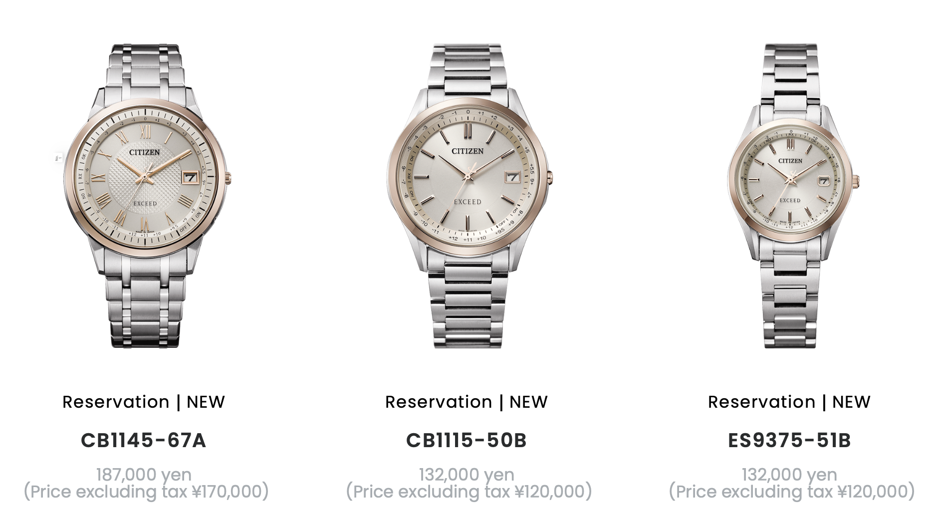 Juntamente com um novo modelo Modelo Series 8a Citizen apresentou três novos modelos de sua linha Exceed no Japão, todos com lançamento previsto para 5 de março. As novas referências - ES9375-51B, CB1115-50Be CB1145-67A - contam com a tecnologia solar Eco-Drive com relógio de rádio multibanda e vêm em estojos finos Super Titanium.