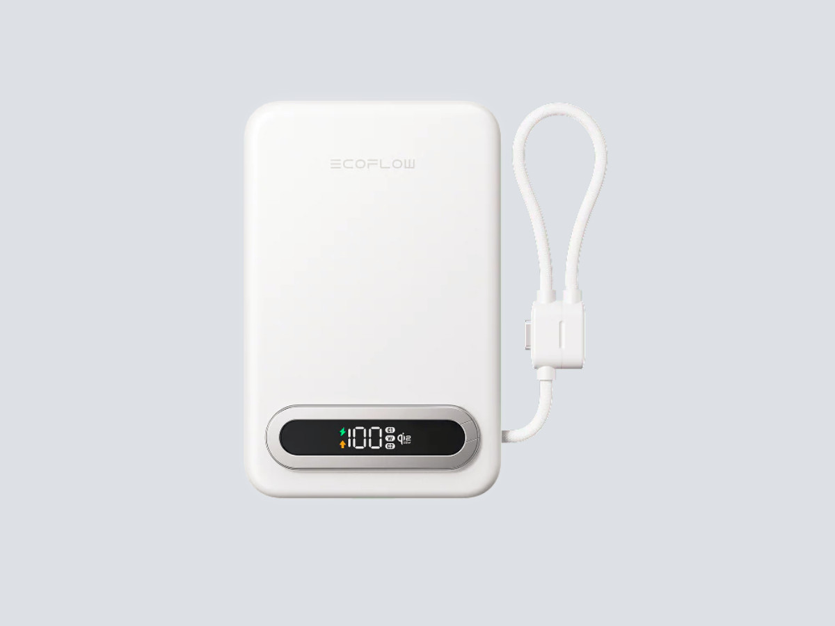Além do carregamento sem fio, o banco de potência inclui um cabo USB-C de 36 W integrado e uma porta USB-C extra, permitindo que o senhor carregue até três dispositivos ao mesmo tempo. O EcoFlow também adicionou uma tela inteligente que mostra a capacidade da bateria, a saída e o tempo de carga restante, além de um suporte para uso com as mãos livres. Apesar de todos os recursos extras, ele ainda é mais fino do que o O banco de energia magnético sem fio MagFlow de 10.000 mAh da Ugreen (21 vs 15,95 mm), e está disponível nas versões branca e preta.