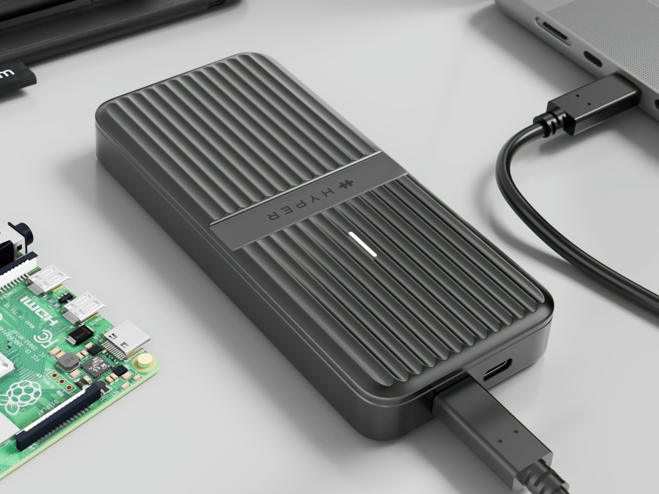 Diferentemente do modelo anterior, o novo gabinete HyperDrive Next USB4 M.2 PCIe (HD2500GL) agora suporta a largura de banda total de 80 Gbps do USB4. Ele deve liberar facilmente o potencial de velocidade dos SSDs NVMe PCIe 4.0 e 3.0, como o Samsung 990 Pro, quando conectado a uma máquina USB4 ou Thunderbolt 5. Além disso, esse modelo também tem uma porta USB-C adicional para fornecimento de energia externa, o que significa que ele pode sustentar essas velocidades máximas por sessões mais longas, ao contrário da maioria dos gabinetes USB4 alimentados por barramento.