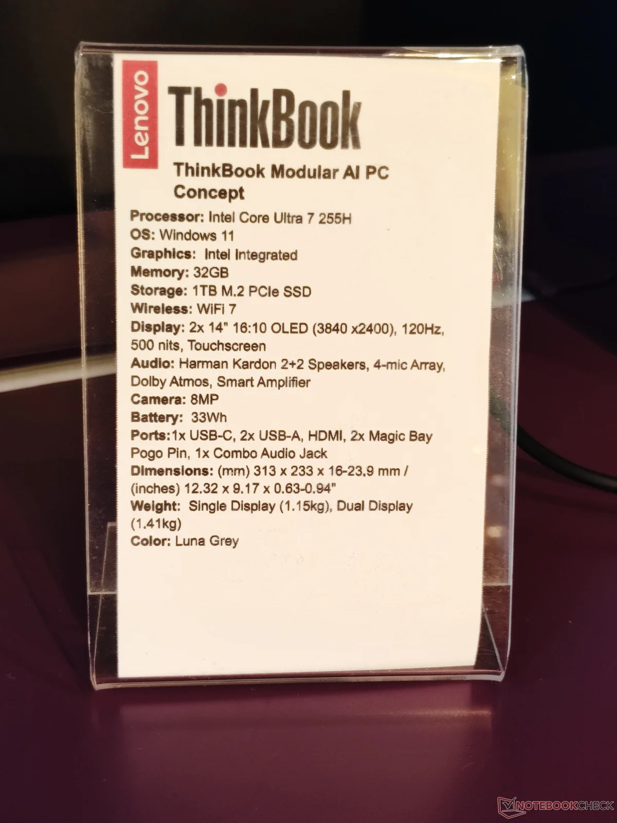 Há uma bateria de 33 Wh, e o laptop modular tem uma configuração de alto-falante Harman Kardon 2+2 com Dolby Atmos. Embora a Lenovo seja conhecida por trazer produtos conceituais para o mercado consumidor, não há nenhuma palavra oficial sobre se o ThinkBook Modular AI PC estará disponível para compra em breve.