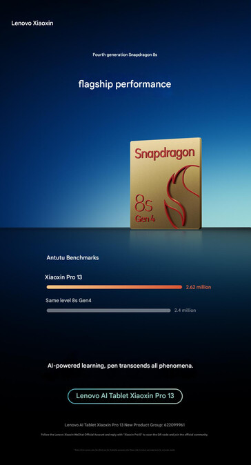 Além disso, a Lenovo confirmou o chipset por trás dos dois tablets Xiaoxin mais baratos que serão lançados. Anteriormente, suspeitávamos que a Lenovo escolheria o Snapdragon 8 Gen 5considerando os rumores do uso do Snapdragon 8 Elite Gen 5 no Xiaoxin Pro GT13. No entanto, a empresa optou pelo Snapdragon 8s Gen 4 de smartphones como o Poco F7 e o Nothing Phone (3) (atualmente, US$ 639 na Amazon).