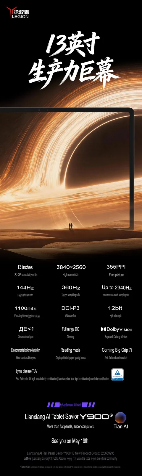 A Lenovo acaba de confirmar oficialmente as especificações de seu principal tablet, o Legion Y900, antes da apresentação do 19 de maio de maio, revelando o que será um dos tablets Android mais poderosos do mercado.