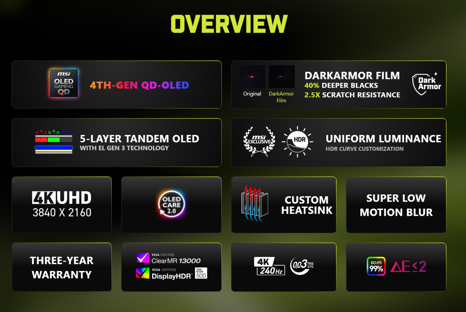 A MSI lança dois novos monitores para jogos QD-OLED de 4ª geração com tecnologia Tandem OLED
