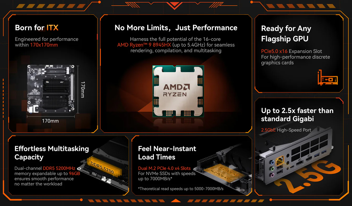A Minisforum apresentou formalmente uma nova placa-mãe MoDT, a BD895i SE. Ela apresenta o AMD Ryzen 9 8945HX, uma CPU capaz da linha Dragon Refresh com 16 núcleos Zen 4. Ela pode ser emparelhada com até 96 GB de RAM DDR5 rodando a 5.600 MHz através dos dois slots.