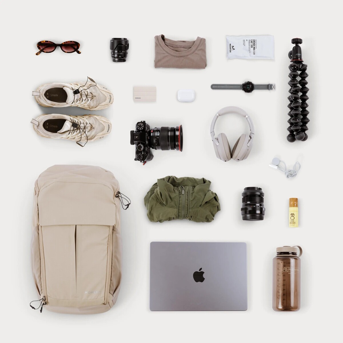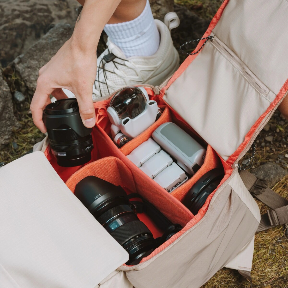 À primeira vista, a nova mochila para câmera Moment Sequence 23L parece uma mochila comum, mas possui compartimentos acolchoados com divisórias ajustáveis presas por velcro, o que oferece espaço para diferentes câmeras e lentes.
