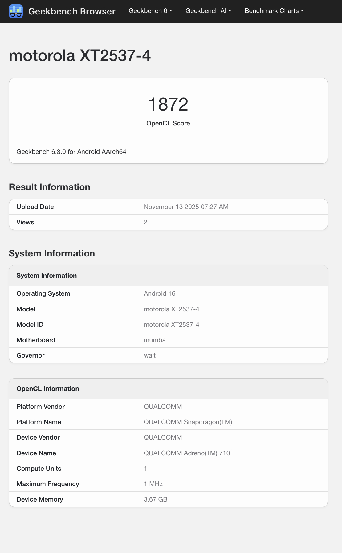 No entanto, outro novo modelo surgiu no Geekbench antes de seu lançamento oficial. Atualmente, a plataforma de benchmarking retorna apenas o nome "Motorola XT2537-4", sendo que XT2534-4 é uma variante do número do modelo raiz "XT2537". Dito isso, várias fontes indicam que o XT2537 está relacionado ao Moto G76, um sucessor direto do Moto G75 que foi lançado em outubro do ano passado com um chipset Snapdragon 6 Gen 3. Por outro lado, parece que o Moto G76 apresenta o Snapdragon 6s Gen 4, um chipset que a Qualcomm revelou há menos de um mês.