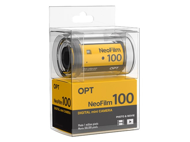 Uma nova câmera digital em forma de filme foi lançada no Japão com a marca Opt! Chamada de OPT100 Neo Filmo dispositivo recria a aparência de um recipiente de filme de 35 mm, mas funciona como uma câmera digital compacta. Ele foi colocado à venda em 10 de dezembro por ¥ 5.940, o que equivale a aproximadamente US$ 38,29.