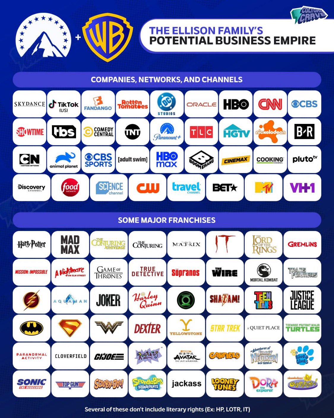 Enquanto a aquisição da Netflix estava levantando preocupações sobre o destino dos lançamentos teatrais de filmes da WB, a fusão da Paramount agora levanta preocupações relacionadas à propaganda política, já que a Paramount Skydance é de propriedade de Larry Ellison e seu filho David, que são importantes doadores republicanos e têm laços estreitos com o presidente dos EUA, Donald Trump. A Paramount está interessada em ser proprietária da CNN e todos os canais de TV da Discovery, ao contrário da Netflix.