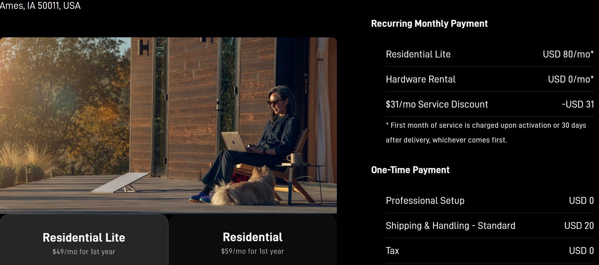 Para completar, o plano Residential Lite foi reduzido ainda mais, para apenas US$ 49/mês no estado, tornando a Starlink um dos provedores de Internet mais competitivos para assinantes em potencial na zona rural de Iowa. Além disso, a Starlink oferece instalação gratuita, o que significa que os técnicos virão à sua casa para montar a antena e testar a conexão de Internet via satélite, se necessário.