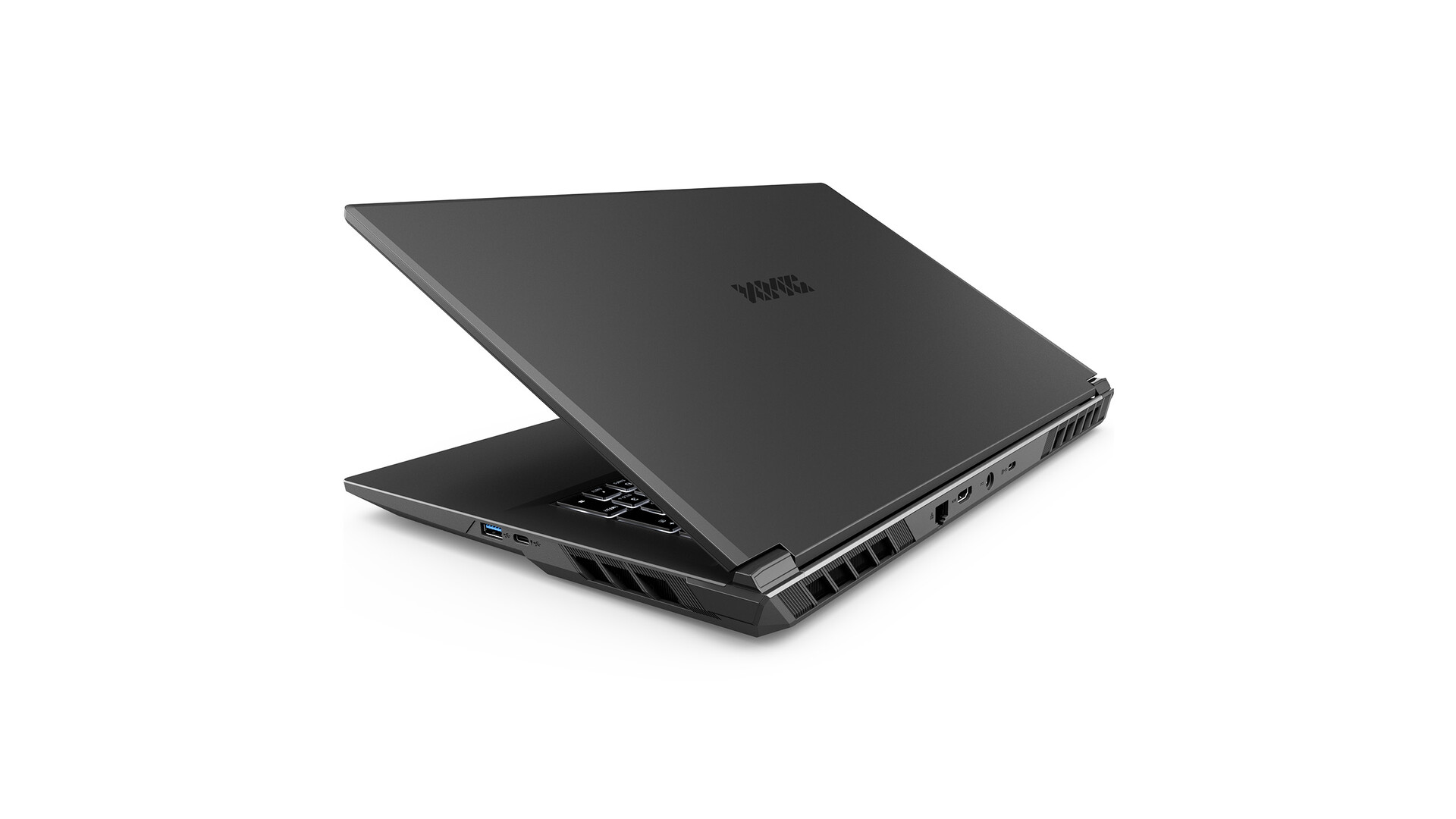 Como a maioria dos modelos da XMG, o Apex 17 M25 apresenta as portas mais rápidas na parte traseira, incluindo Gigabit Ethernet, HDMI 2.1 (48 Gbps), USB-C 3.2 Gen2 com DisplayPort 1.4a integrado e o conector da fonte de alimentação. As portas adicionais nas laterais incluem USB-A 3.2 Gen2 e Gen1, um conector de áudio 2 em 1 para fone de ouvido e microfone e outro USB-C 3.2 Gen2 com DisplayPort 2.1 integrado (DP40) e 100 W Power Delivery. A conectividade sem fio é fornecida por meio de uma placa Wi-Fi 6E + BT 5.3.