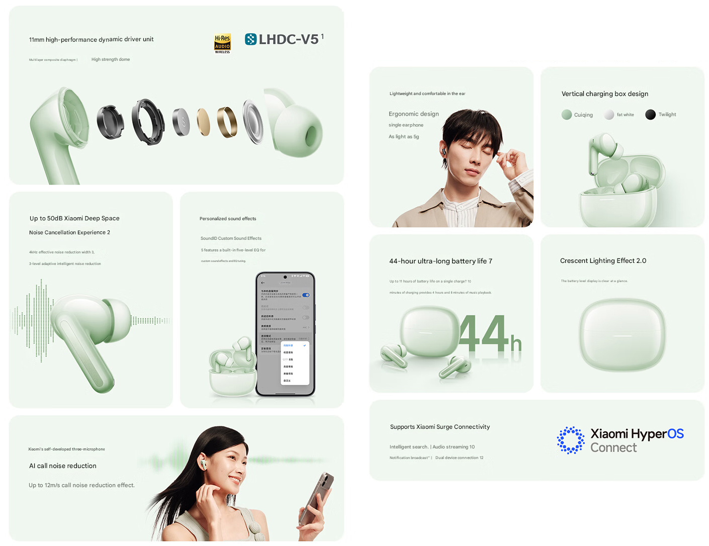 Há um recurso de personalização de som, que permite aos usuários criar um soundID personalizado personalizado que corresponda às suas preferências de audição. A Xiaomi também promete uma experiência de chamada clara com a configuração de três microfones, que é emparelhada com um algoritmo de redução de ruído de IA.
