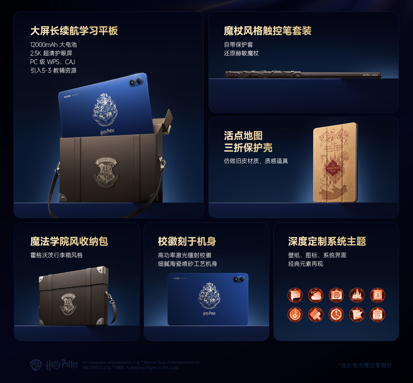 Por outro lado, o Redmi Pad 2 Pro está à venda globalmente desde setembro do ano passado (atualmente, US$ 268 na Amazon). Agora, a Xiaomi atualizou seu tablet de 12,1 polegadas com uma edição Harry Potter, que se junta às variantes Wi-Fi e 5G que a Xiaomi já oferece internacionalmente. As especificações principais também permanecem inalteradas para o lançamento chinês do dispositivo, com um Qualcomm Snapdragon 7s Gen 4 complementado por uma bateria de 12.000 mAh e carregamento com fio de 33 W.