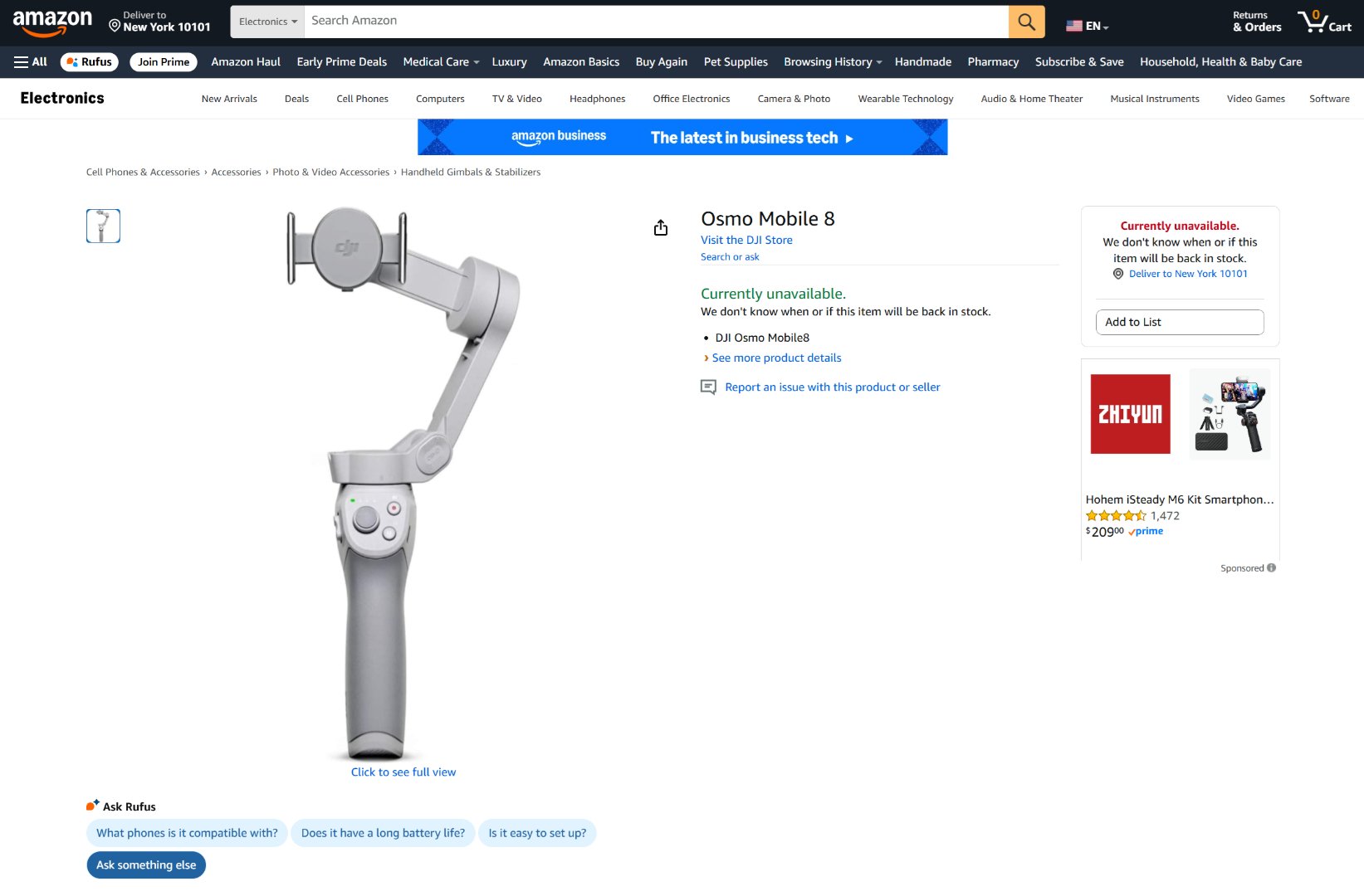 No entanto, a listagem sugere que terceiros antecipam um lançamento mais cedo ou mais tarde. Além disso, o Osmo Mobile 8 esteve brevemente disponível para encomenda por US$ 149. Infelizmente, ainda não se sabe se esse preço é meramente indicativo e não um vazamento definitivo.