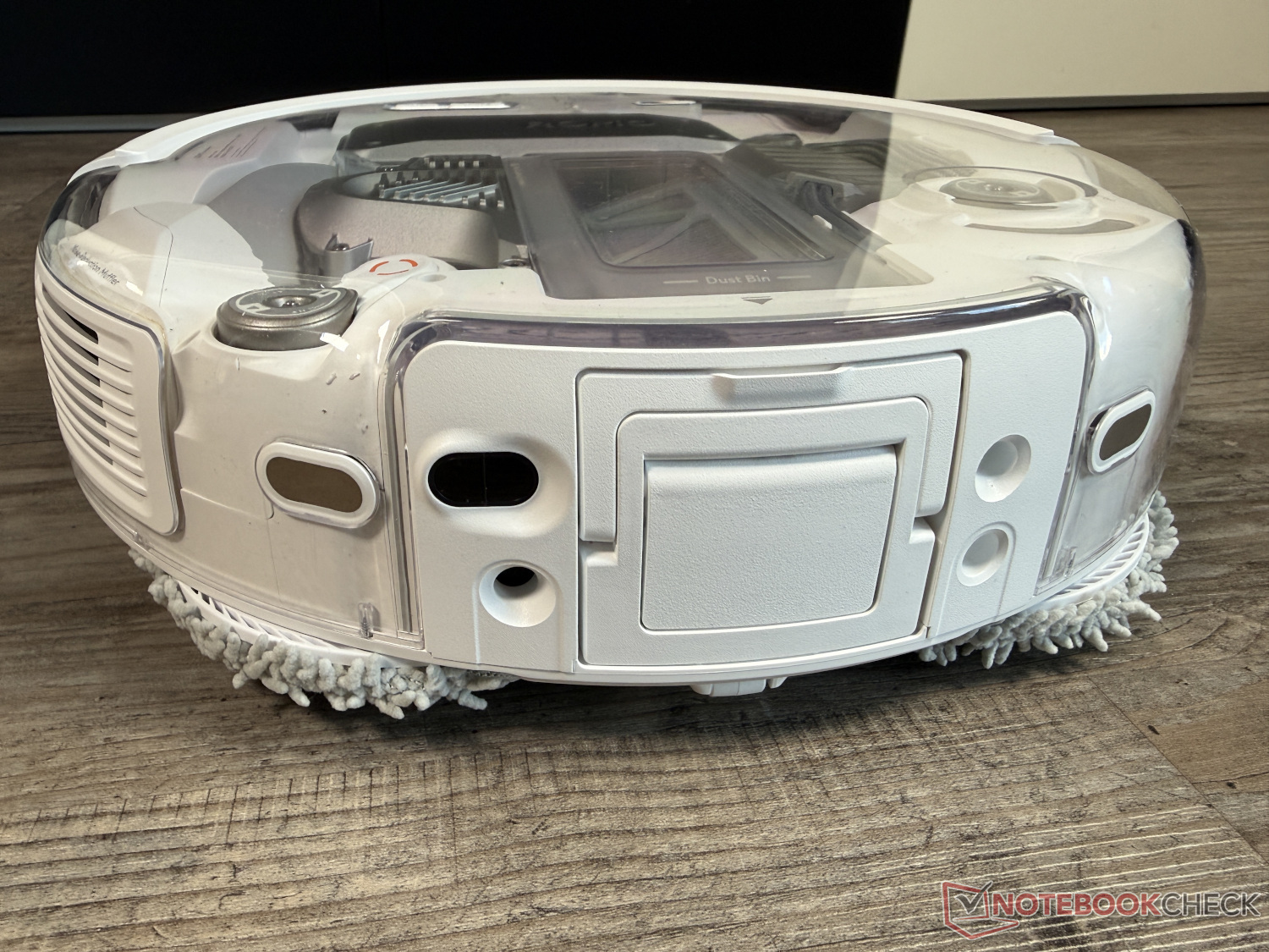 Também não há muito a criticar em termos de desempenho de limpeza. Mesmo com a média das três forças de sucção, ele removeu a maior parte da sujeira testada de areia fina, migalhas e pelos de cachorro de um carpete de pelo médio com seus rolos com escovas e borracha. Apenas alguns grãos de areia foram deixados para trás. No entanto, como os esfregões só podem ser levantados até certo ponto e não podem ser colocados no chão, infelizmente a pilha ficou levemente úmida ao combinar esfregão e aspiração.