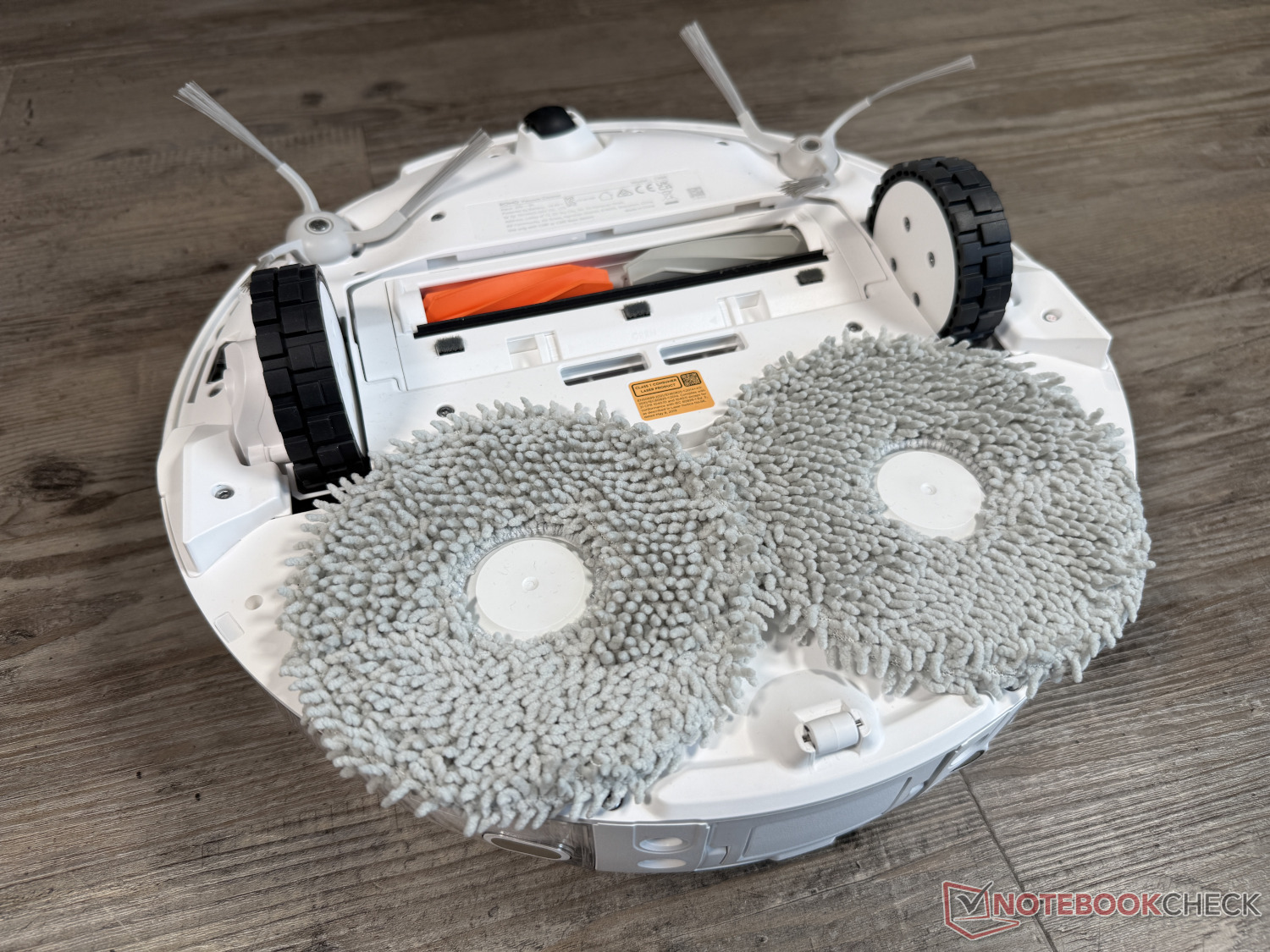 Com 25.000 Pa, o poder de sucção não está no mesmo nível de outros modelos emblemáticos, mas ainda é muito alto. O fabricante combina duas escovas laterais com uma ampla área de varredura, sendo que uma delas pode ser estendida para a limpeza de cantos e bordas. Isso também se aplica a um dos dois esfregões rotativos e macios na parte traseira do robô, que são mantidos constantemente úmidos por um tanque de água de 164 ml. A escova com rolo é dividida em duas partes para evitar que o cabelo fique emaranhado. No total, estão incluídas duas: uma com escovas e borracha para carpetes e pisos muito sujos e uma escova com rolo de borracha ideal para cabelos longos e pelos de animais.