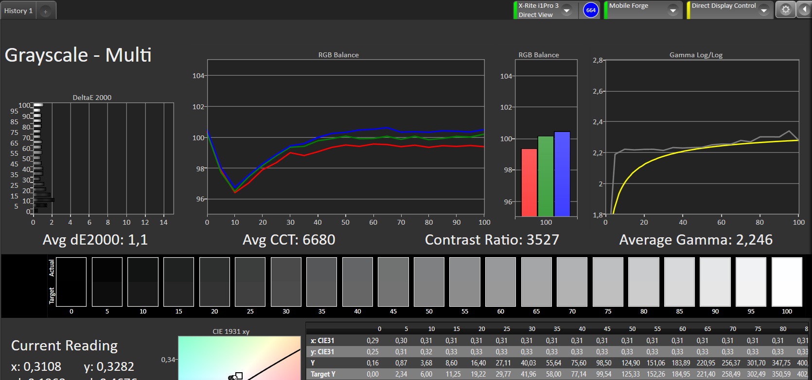 ΔE Greyscale Calman: 1.1 | ∀{0.09-98 Ø5}