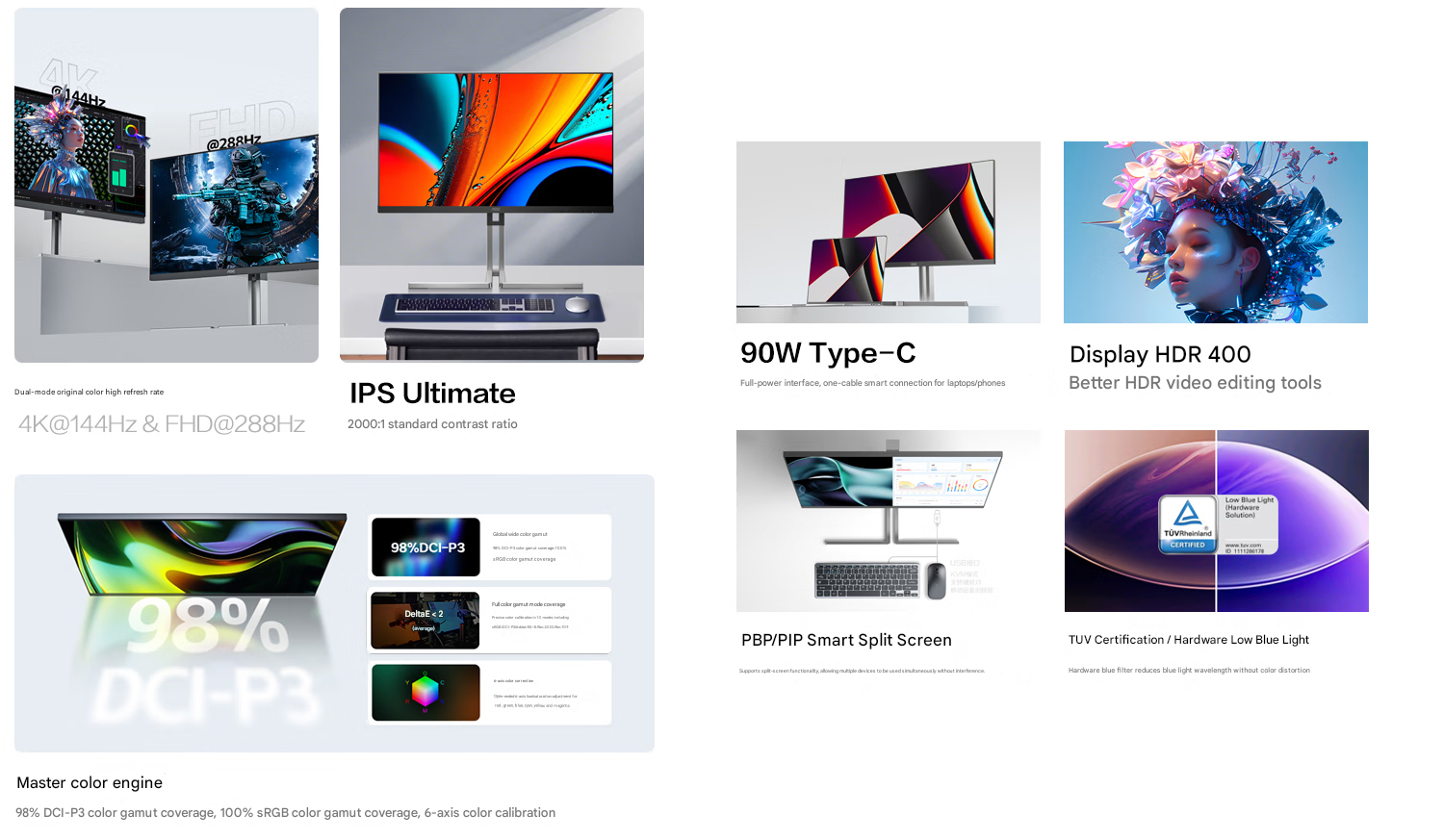 Na resolução 4K, a taxa de atualização do monitor cai para 144 Hz, mas com maior clareza, esse modo é mais adequado para cargas de trabalho profissionais. Falando nisso, o AOC U27U3XD tem um painel IPS de 27 polegadas com 100% sRGB e 98% DCI-P3 cobertura.