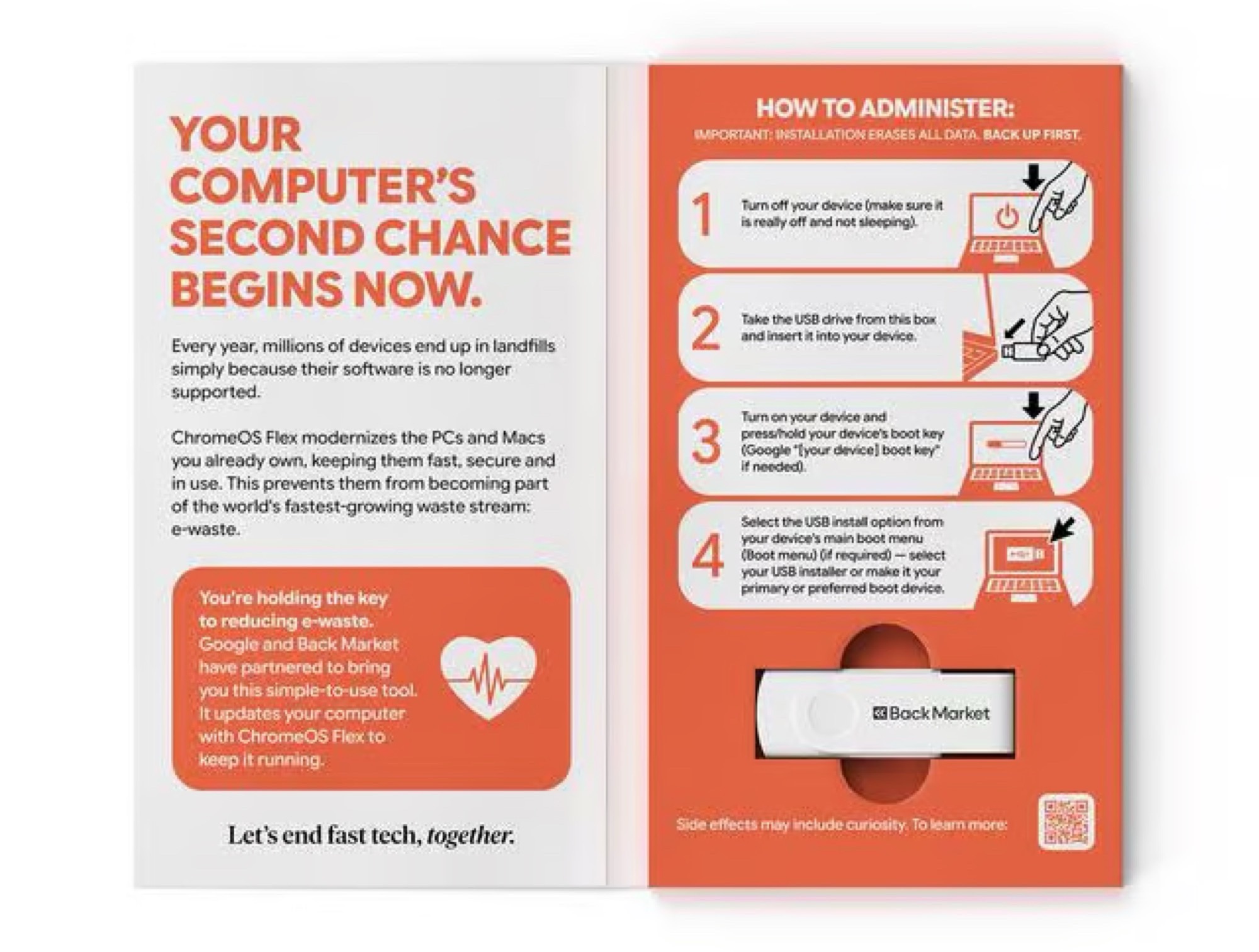 Tecnicamente falando, é um pendrive de 16 GB no qual o ChromeOS Flex está instalado. Se o pen drive for inserido em um laptop, o ChromeOS Flex poderá ser instalado diretamente no laptop ou inicializado a partir do pen drive para que nenhum dado seja perdido no laptop. A instalação deve levar menos de cinco minutos