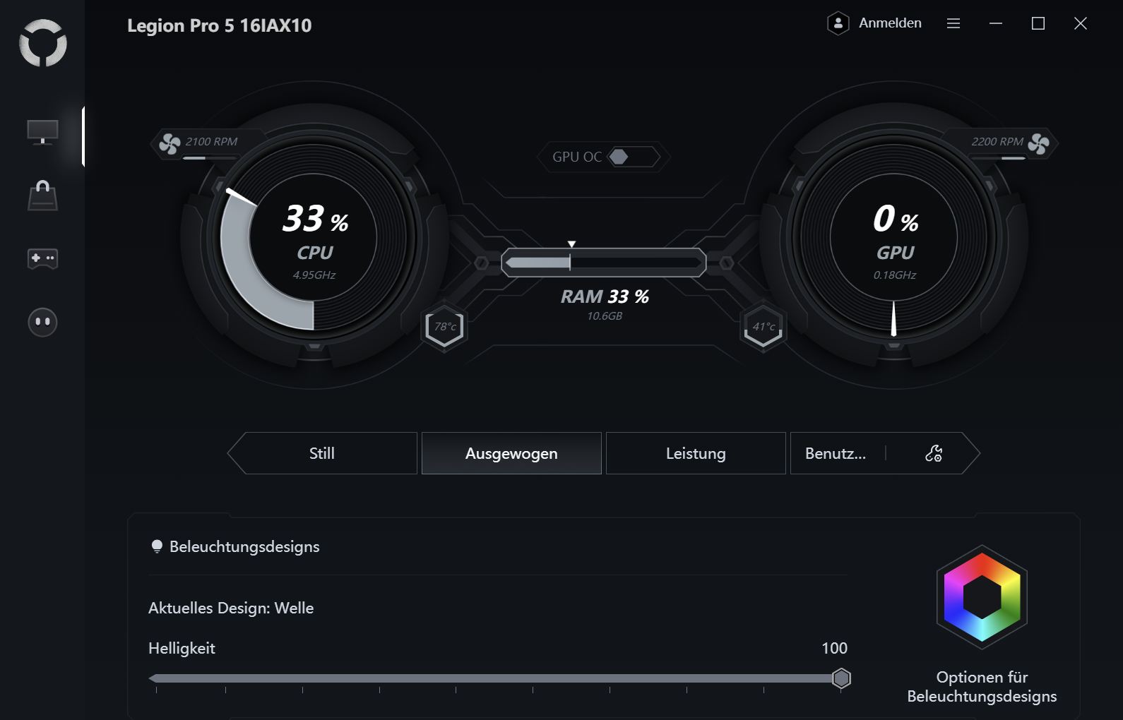 A Lenovo pré-instala dois utilitários importantes: Vantage para gerenciamento do sistema, varreduras de hardware e configurações gerais, e Legion Space, o hub de jogos com modos de desempenho e controle MUX. Ambos os aplicativos incluem anúncios, e o Vantage pode ser intrusivo com pop-ups frequentes. O Lenovo Now, outro aplicativo, é quase totalmente promocional - é melhor desinstalá-lo.