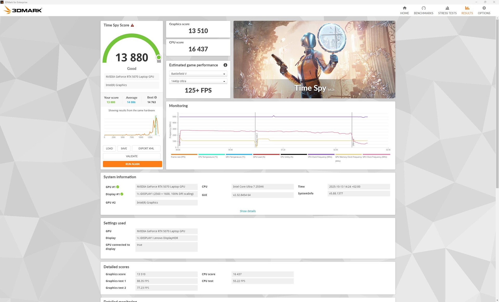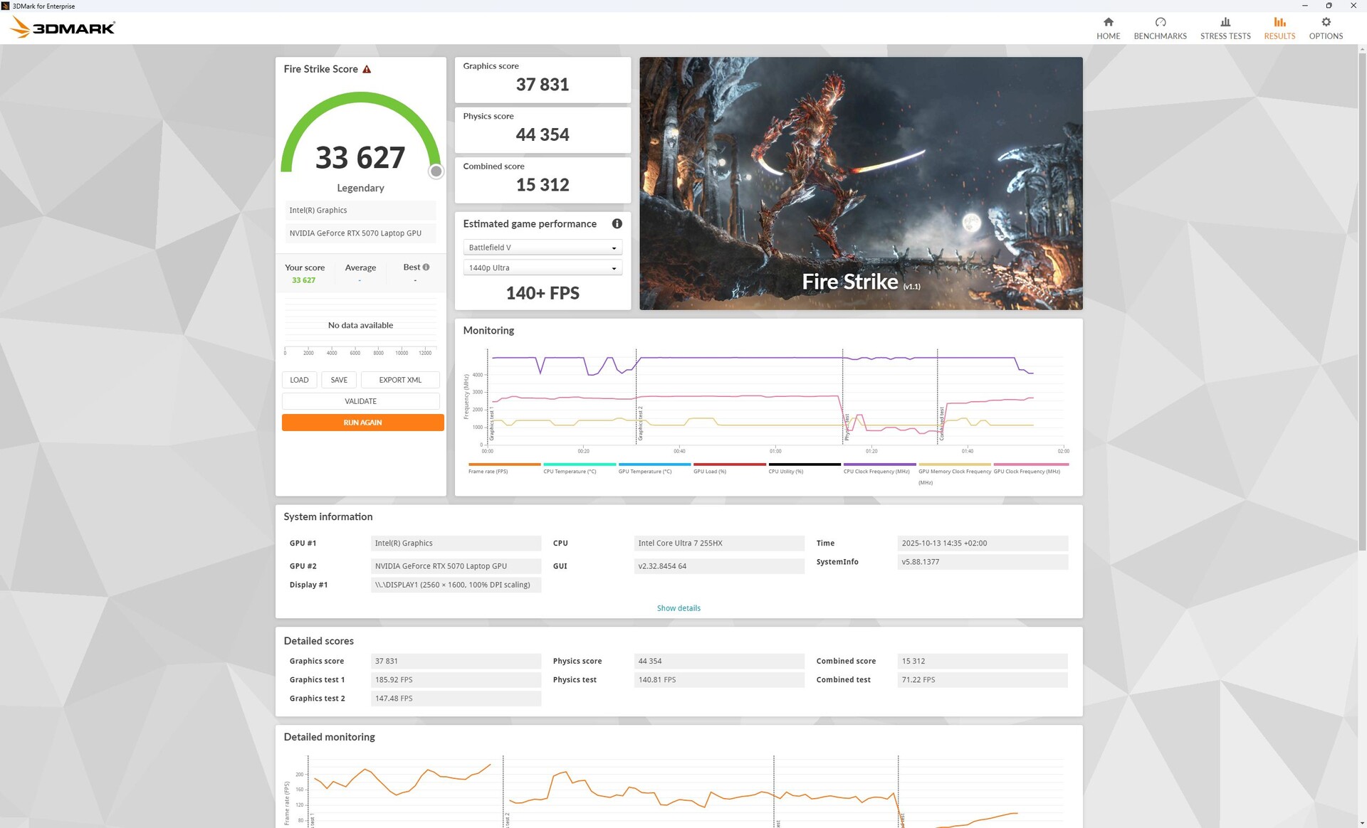 A versão Versão RTX 5070 Ti foi um dos laptops mais rápidos com essa GPU, e o mesmo pode ser dito sobre o modelo RTX 5070 padrão, embora a vantagem sobre os rivais não seja tão grande. O Aurora 16X da Alienware da Alienware, consegue até mesmo superá-lo ligeiramente.