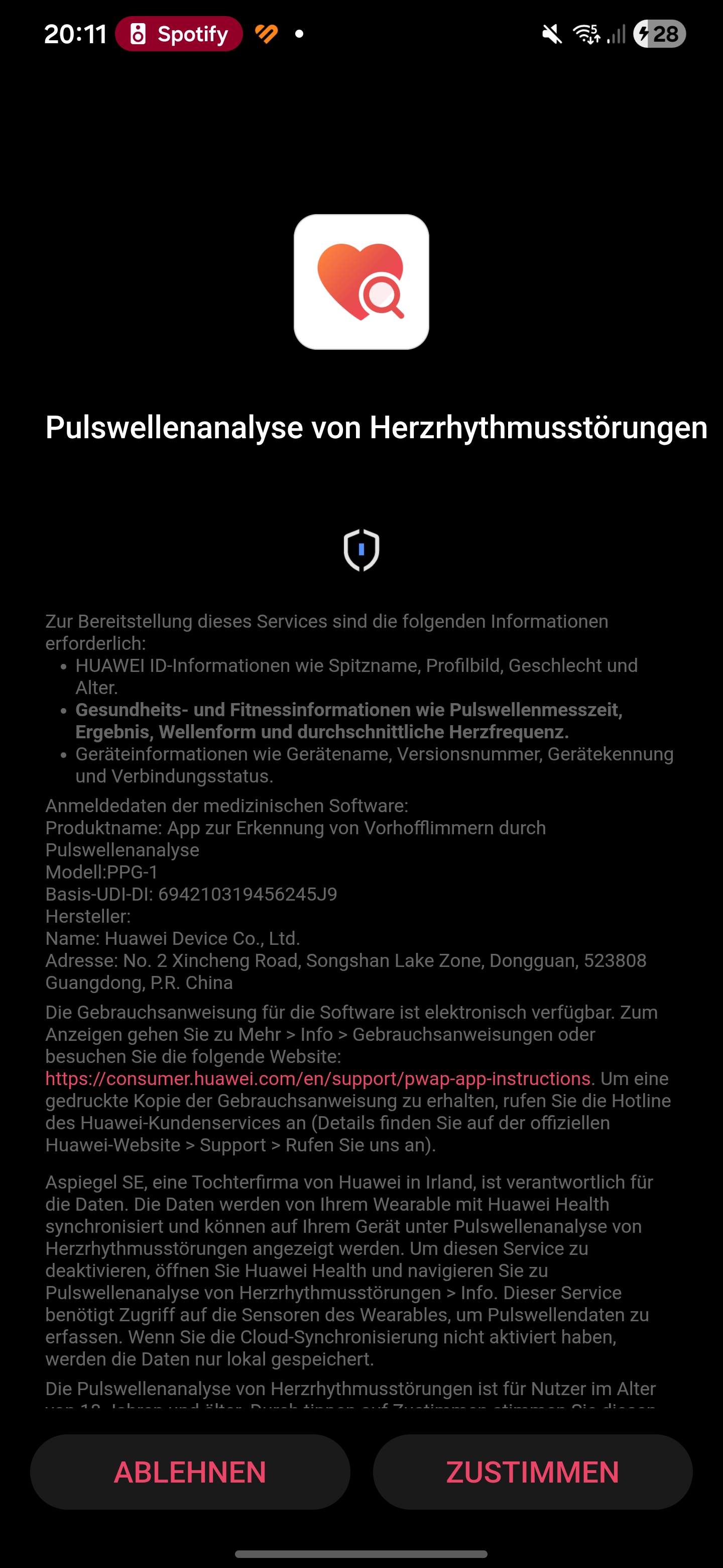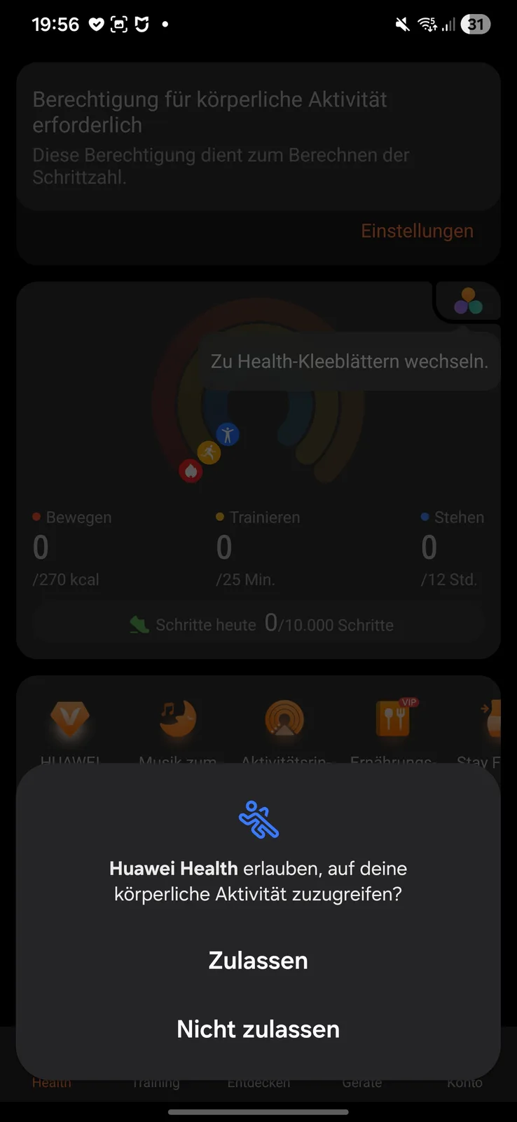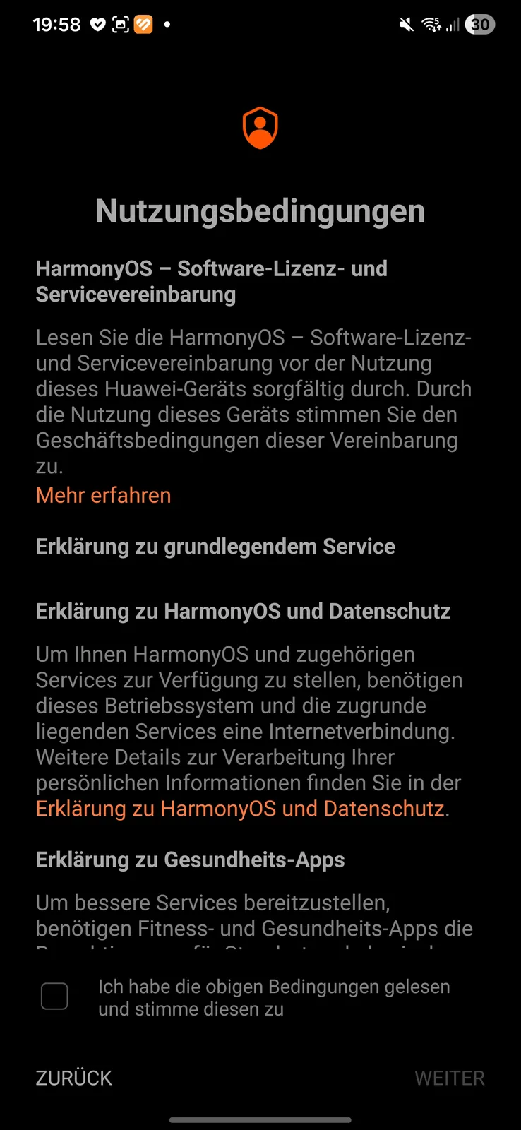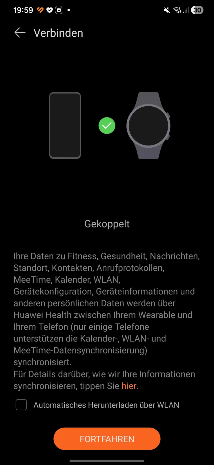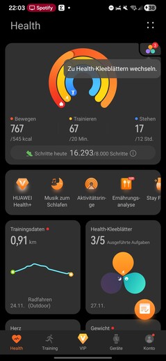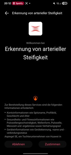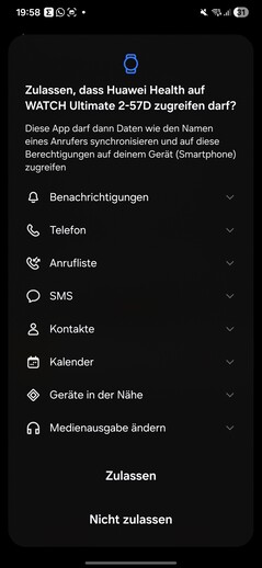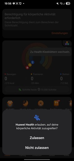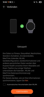 Nos testes, o smartwatch foi detectado imediatamente e emparelhado sem problemas. Várias permissões devem ser concedidas durante a configuração. Também é necessário um ID da Huawei. No final do processo, um tutorial é iniciado no relógio. Uma coisa chama a atenção: cada aplicativo aberto no smartwatch requer seu próprio consentimento de processamento de dados separado.