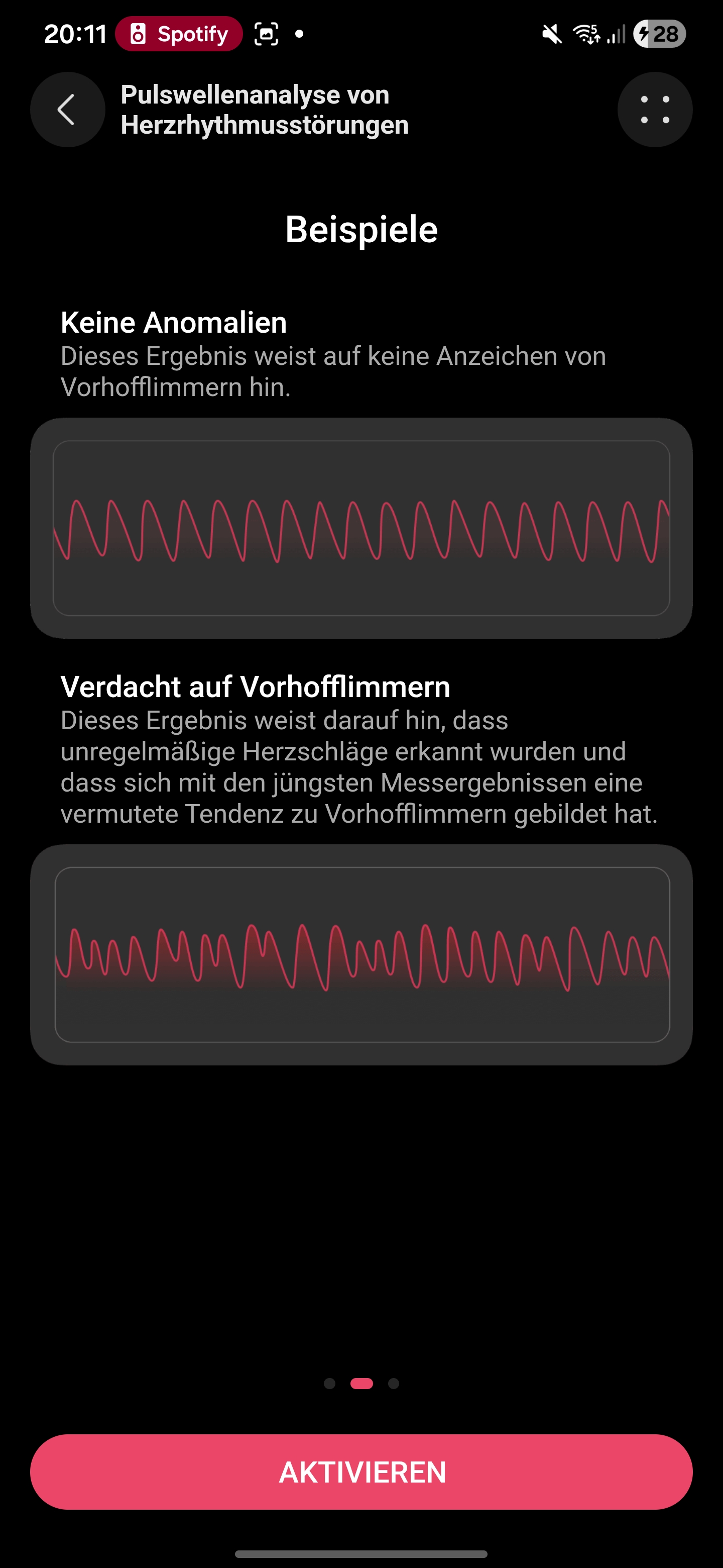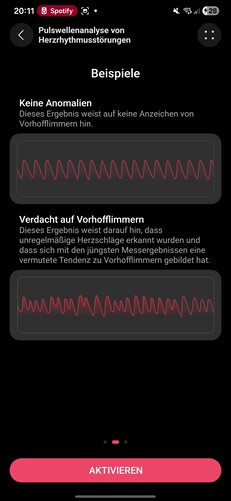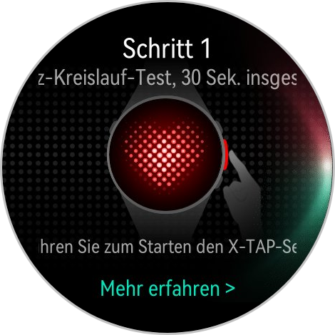 Os testes podem ser iniciados manualmente no relógio, colocando-se um dedo no sensor X-Tap, e levam apenas cerca de um minuto. Além das leituras individuais, o software também fornece Health Insights, destacando alterações e tendências, como uma frequência cardíaca em repouso excepcionalmente alta.