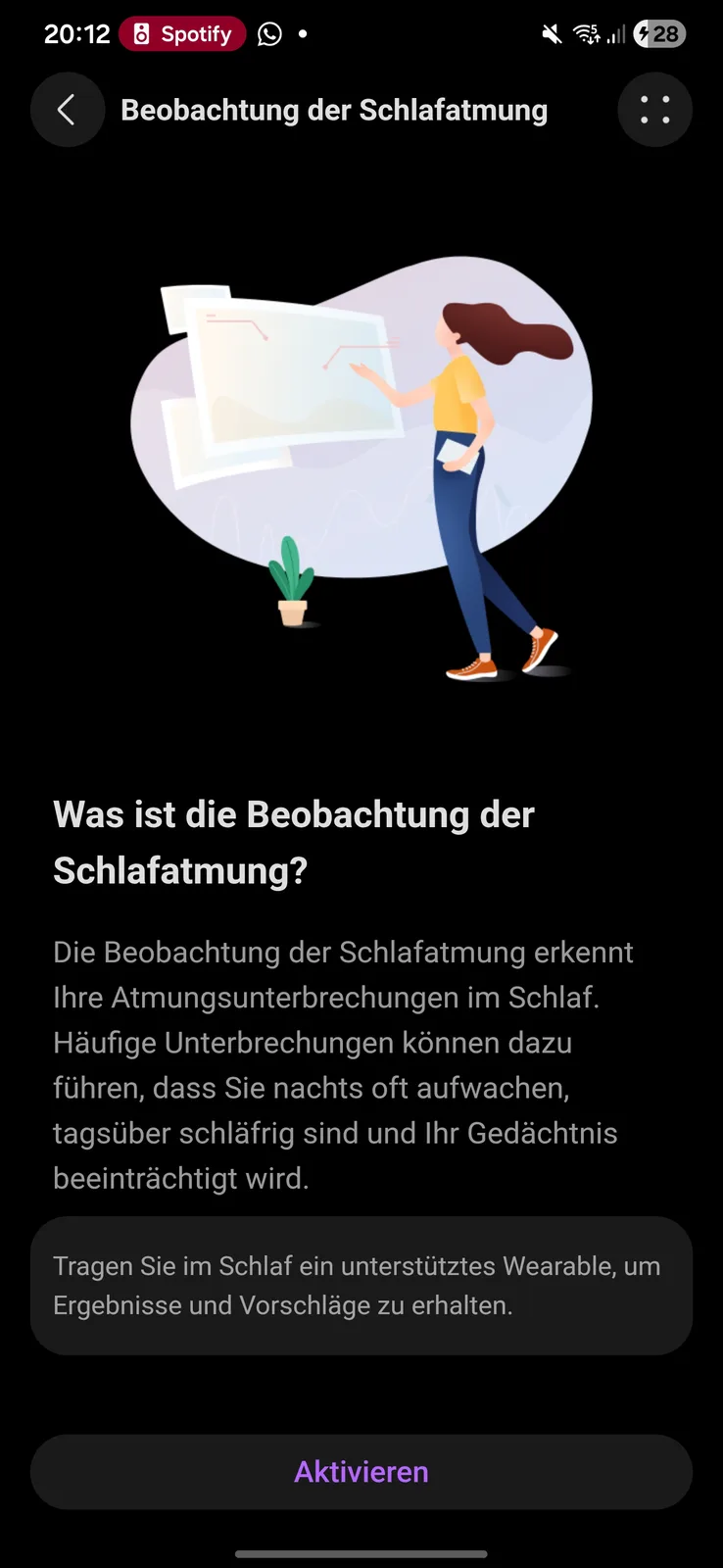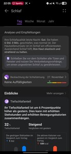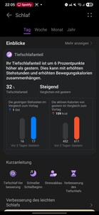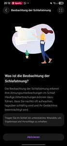 O relógio também monitora a continuidade do sono profundo, a qualidade da respiração, a frequência cardíaca, a saturação de oxigênio e a frequência respiratória. A detecção de sons do sono requer um smartphone emparelhado por perto. O sono geral é classificado usando uma pontuação e um sistema de estrelas, e o software fornece análises e recomendações para melhorar a qualidade do sono.
