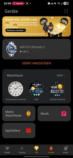 O aplicativo Huawei Health é necessário para configurar e operar o Watch Ultimate 2. A versão mais recente ainda não está disponível na Google Play Store, mas pode ser baixada de outras lojas de aplicativos ou diretamente pelo navegador.