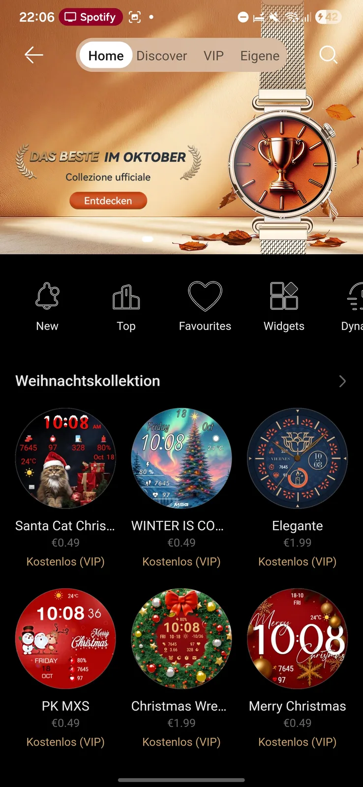 Os exercícios concluídos aparecem em Training (Treinamento). O VIP desbloqueia o acesso ao nível pago Plus. A guia Devices (Dispositivos) contém configurações, a AppGallery, gerenciamento de músicas e uma grande seleção de mostradores de relógio.