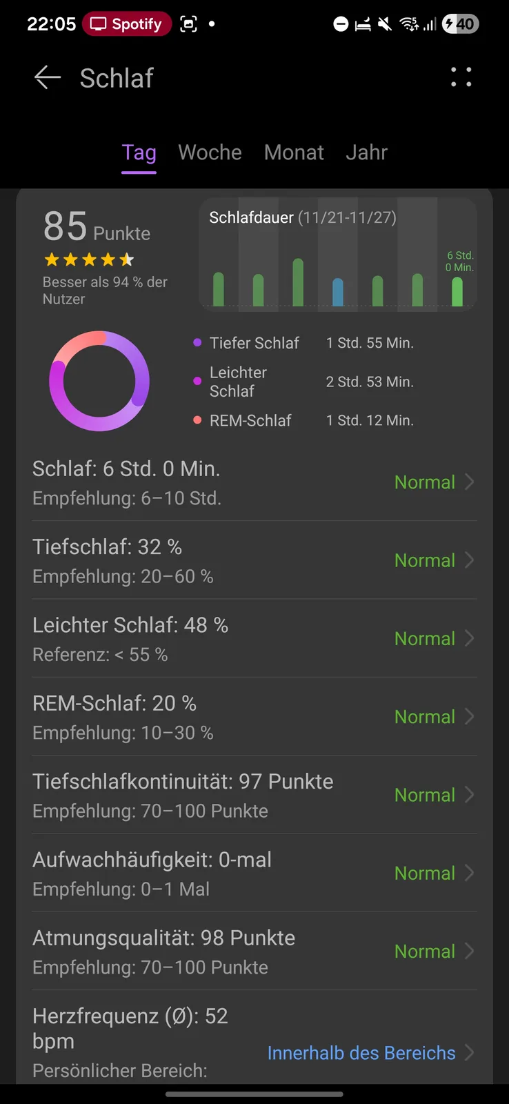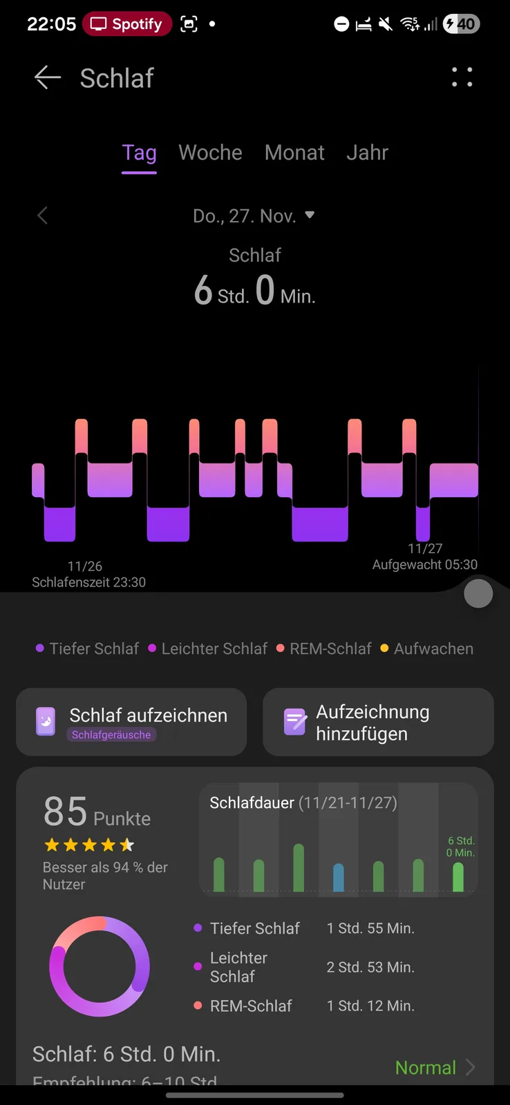 O Huawei Watch Ultimate 2 oferece um amplo rastreamento do sono. Ele registra os diferentes estágios do sono e mostra o tempo e a proporção do sono total. Esses estágios são visualizados em uma linha do tempo.
