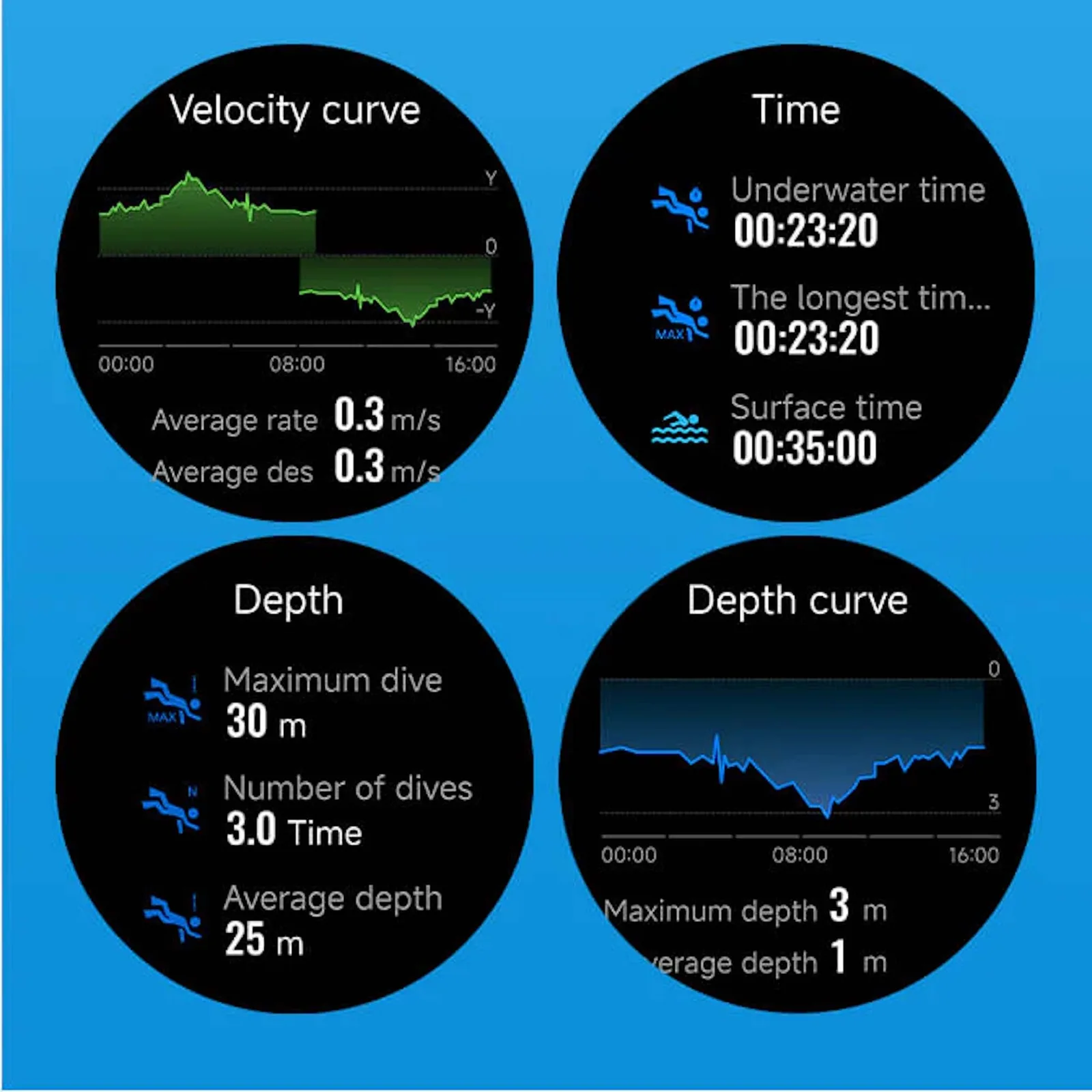 Como de costume, os sensores ópticos podem medir a frequência cardíaca e a saturação de oxigênio no sangue, e o rastreamento do sono também é suportado. A tela AMOLED de 1,32 polegada tem uma resolução de 466 x 466 pixels e um pico de brilho de até 1.500 nits, enquanto a duração típica da bateria é de 20 dias. Os recursos de mergulho também estão incluídos. Por último, mas não menos importante, o suposto concorrente do Garmin Fenix 8 pode ser usado para mergulhar a uma profundidade de 98 pés, e pode exibir dados como a profundidade atual do mergulho.