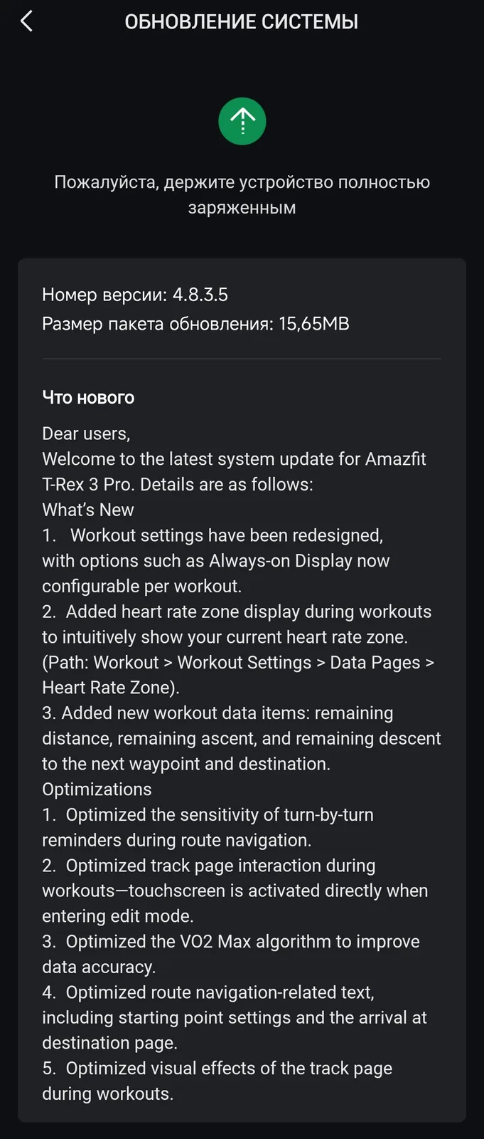 A versão de firmware 4.8.3.5 também traz várias otimizações para o T-Rex 3 Pro. A sensibilidade dos lembretes passo a passo para a navegação de rotas foi aprimorada, assim como a experiência do usuário na página de rastreamento. A Amazfit afirma que otimizou o algoritmo por trás do cálculo do VO2 Max para obter informações mais precisas. Além disso, o texto relacionado à navegação na rota teria sido aprimorado.