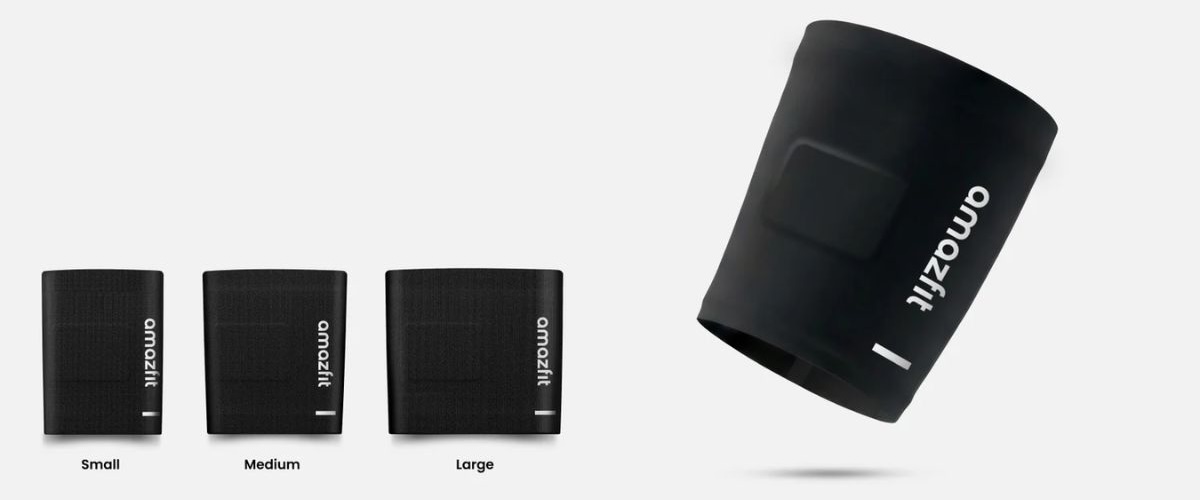 A nova manga de braço da Amazfit também é considerada confortável de usar, feita de um material com uma mistura de 75% de poliamida e 25% de spandex. Há três tamanhos disponíveis: Pequeno (22-28 cm/8,7-11,0 polegadas), Médio (27-35 cm/10,6-13,8 polegadas) e Grande (35-45 cm/13,8-17,7 polegadas). As imagens sugerem que ela é significativamente mais larga do que a Braçadeira Helio, embora a medida da largura não tenha sido fornecida.