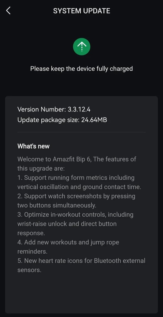 A versão 3.3.12.4 do software do Amazfit Bip 6 é uma atualização de 24,64 MB. Lançada em fases, ela estará disponível para download por meio do aplicativo Zepp para todos os usuários nas próximas semanas.