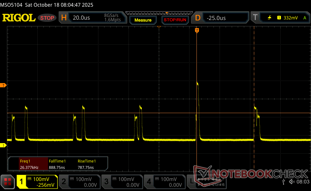 O consumo quando sob carga é ligeiramente maior, em média, do que o registrado no antigo ZBook Power 16 G11 A. No entanto, nosso ZBook X G1i 16 também é a máquina mais rápida e mais enxuta e, portanto, o alto desempenho por watt é preservado.
