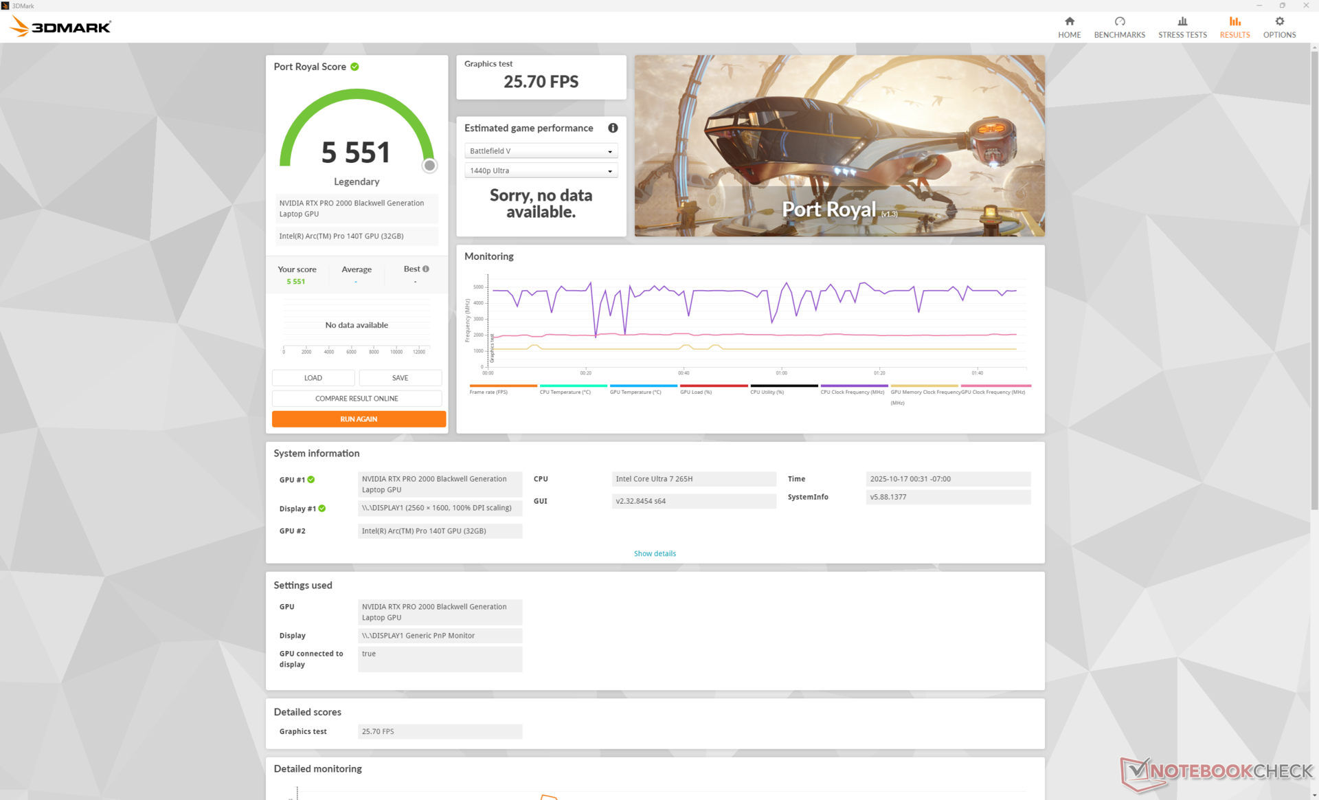 Nossa unidade de teste é a configuração intermediária com o Core Ultra 7 265H, tela 2K 1600p120 e GPU RTX Pro 2000 por aproximadamente US$ 2700. A lista completa das configurações disponíveis pode ser vista aqui.