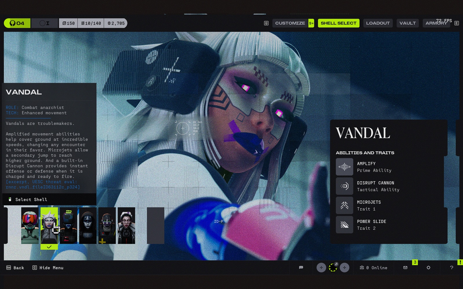 Uma das decisões mais inteligentes da Bungie foi fazer com que as conchas dos corredores parecessem arquétipos intencionais em vez de avatares intercambiáveis. Em minha prévia práticaa linha de seis cascas incluía Thief (Ladrão), Destroyer (Destruidor), Vandal (Vândalo), Assassin (Assassino), Recon (Reconhecimento) e Triage (Triagem), e isso imediatamente deu ao jogo uma espinha dorsal de classe mais forte do que muitos jogos de tiro ao vivo conseguem no início. A mesma prévia também observou como a estrutura de cascas empurra os jogadores para ritmos distintos construídos em torno de furtividade, interrupção, suporte, reconhecimento, mobilidade e agressão direta.