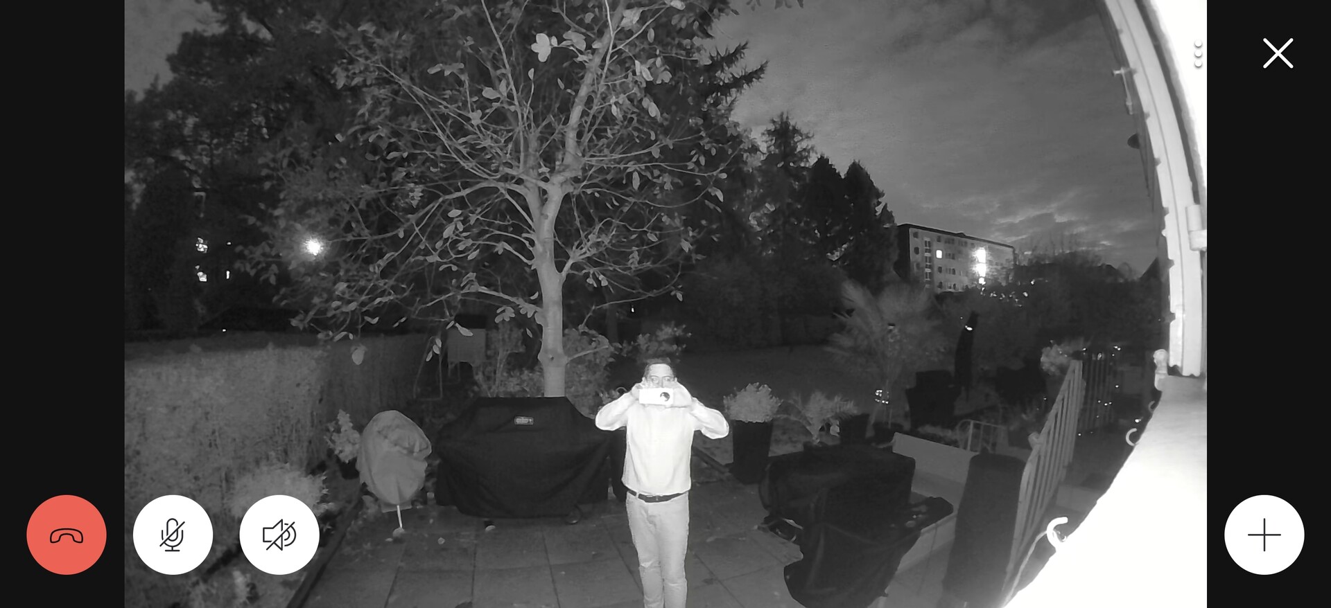 As notificações push em smartphones ou tablets chegam ao usuário em segundos. O senhor pode falar diretamente pela exibição ao vivo: um sistema de áudio bidirecional com cancelamento de ruído permite uma comunicação compreensível. O microfone integrado capta as vozes com clareza, mas os convidados não devem estar muito distantes da câmera, caso contrário, será difícil entendê-los.