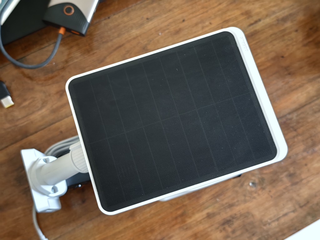 Quanto à duração da bateria, carreguei o dispositivo de segurança apenas uma vez antes da instalação. Após a instalação, não o carreguei nenhuma vez, graças ao painel solar de 3 W, que está fazendo seu trabalho com eficiência. A Baseus afirma que 20 minutos de sol podem alimentar um dia inteiro de operação.