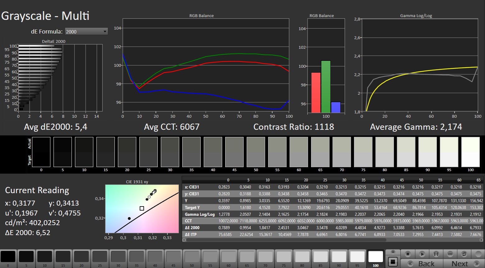 ΔE Greyscale Calman: 5.4 | ∀{0.09-98 Ø5}