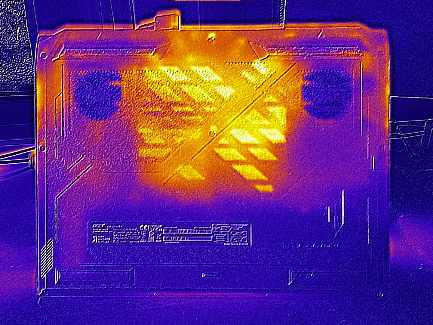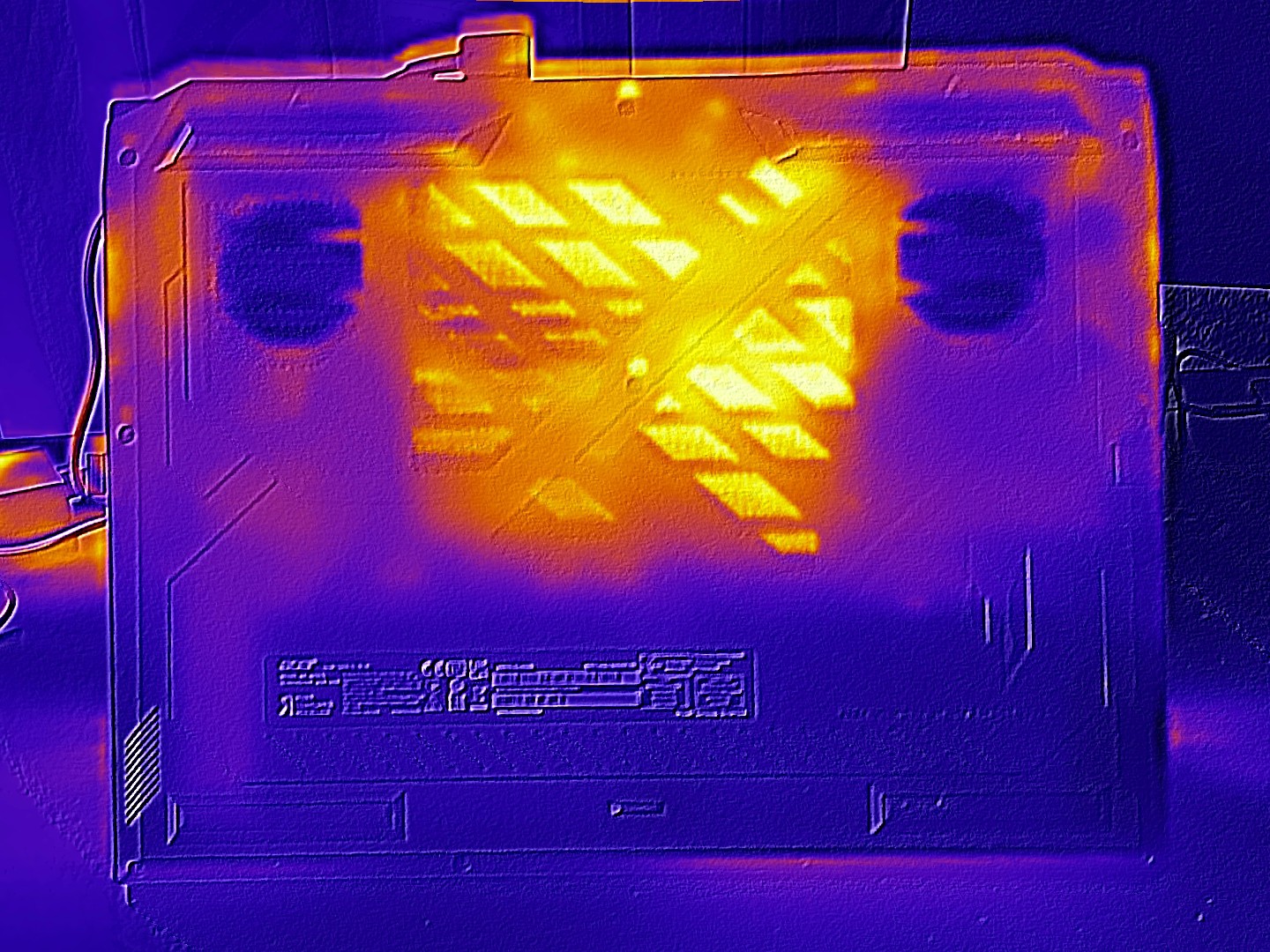 O Nitro V 16 poderia ter tido um desempenho melhor em termos de temperaturas de superfície. Um máximo de 59 °C na parte inferior do gabinete é bastante alto para um dispositivo com componentes de médio porte e não é adequado para sessões de jogos no colo.