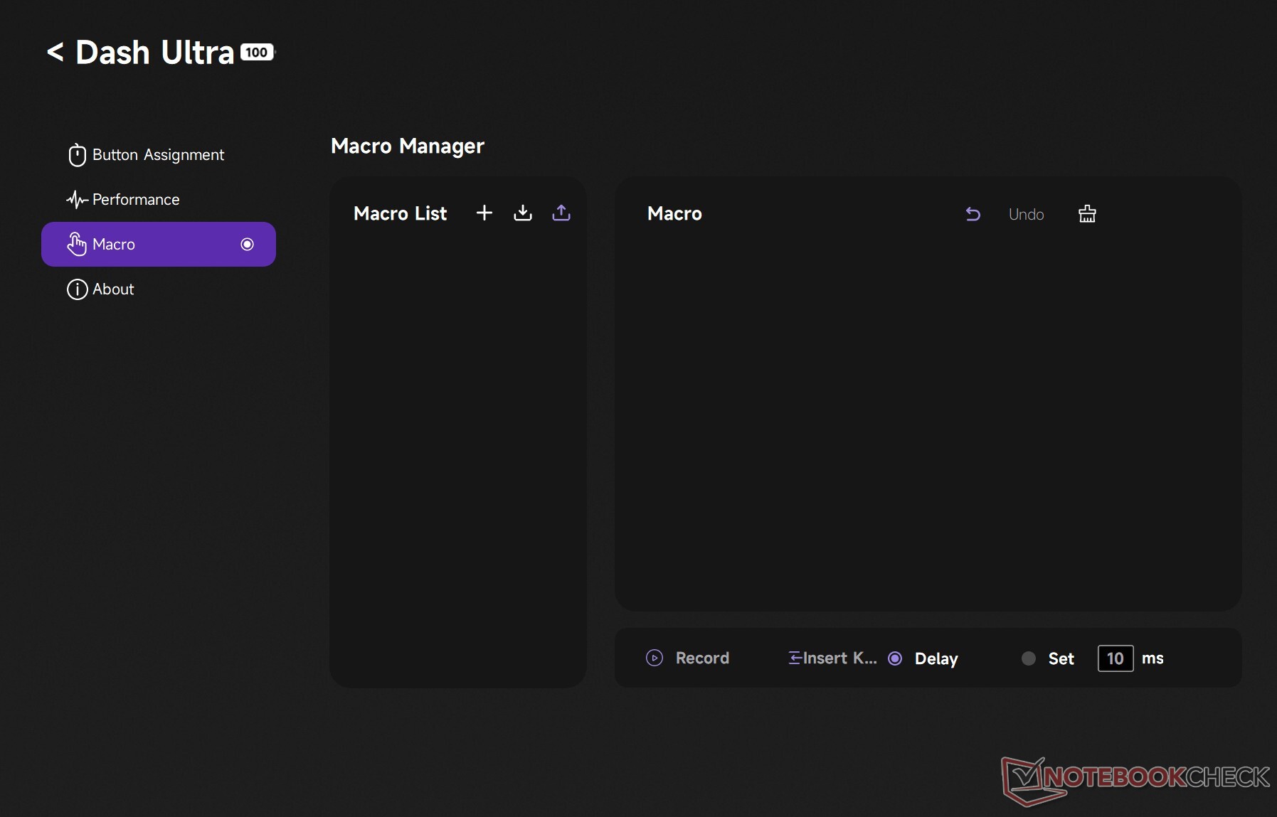 Para sessões produtivas, há uma opção para ativar o Ripple Control, que basicamente suaviza o movimento, mas acrescenta um atraso perceptível. Além disso, o software tem uma seção dedicada de Seção Macroe, como observa Akko, a empresa planeja lançar um driver da Web para o mouse para jogos em 31 de março de 2026.